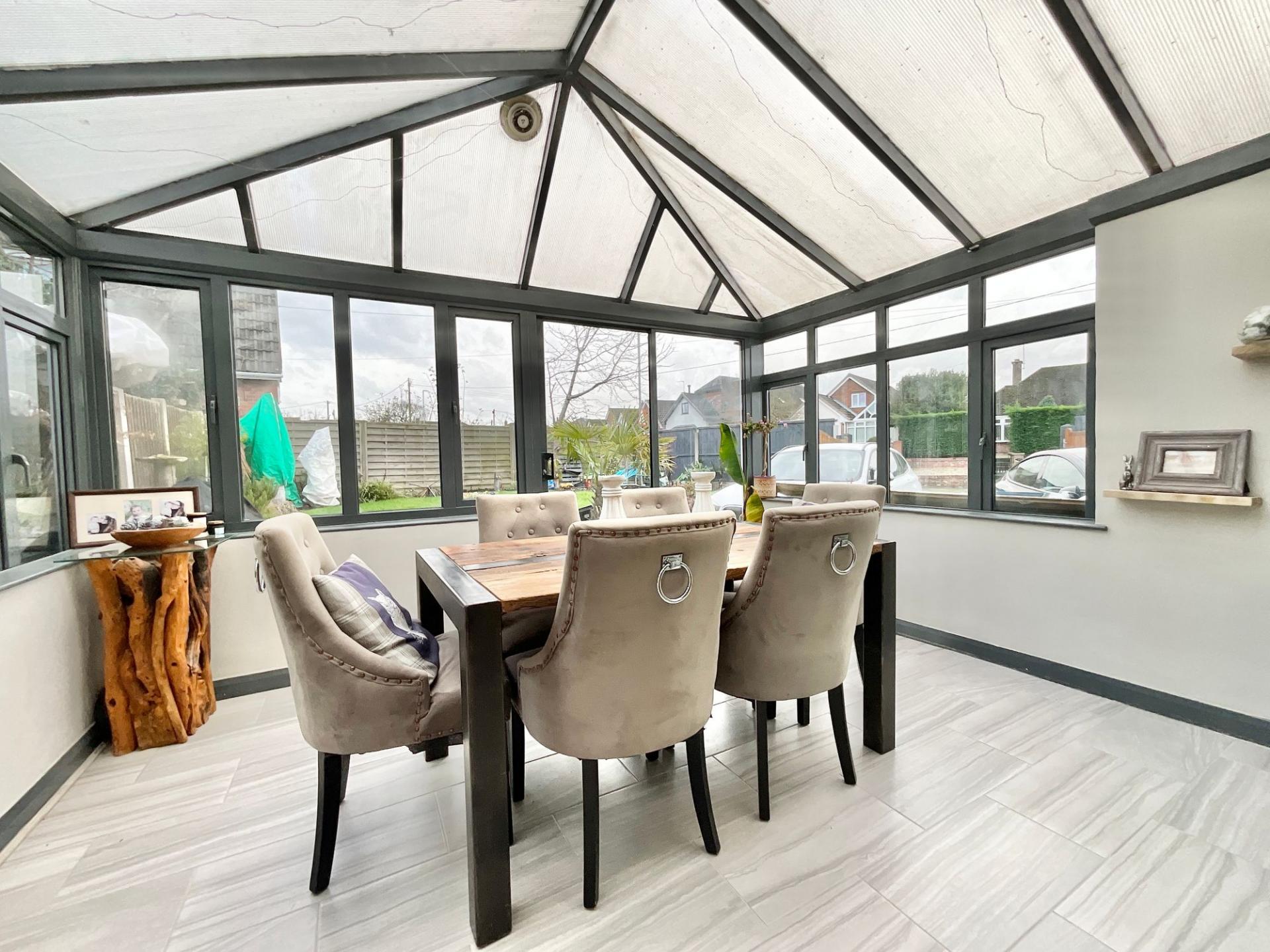 - On the ground floor find a kitchen, large living area, conservatory, entrance hall and porch.