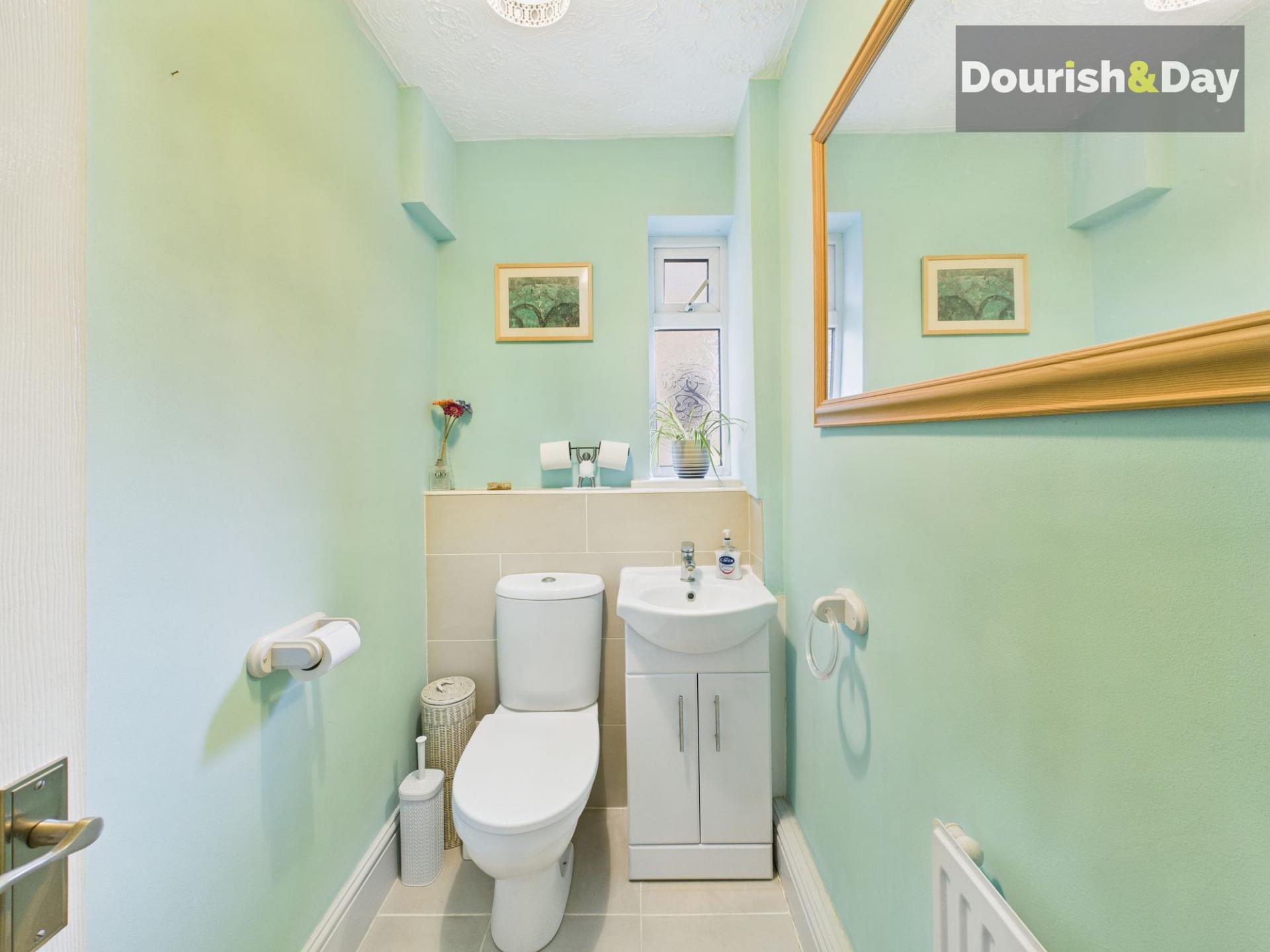Upstairs, the first floor offers four well proportioned bedrooms. The principal bedroom is the largest and includes built-in wardrobe space. Two further double bedrooms also benefit from built-in wardrobes, while the fourth bedroom is a particularly generous single overlooking the garden, again with fitted storage. A nicely presented family bathroom completes the accommodation, fitted with a shower over the bath and finished in a clean, neutral style.