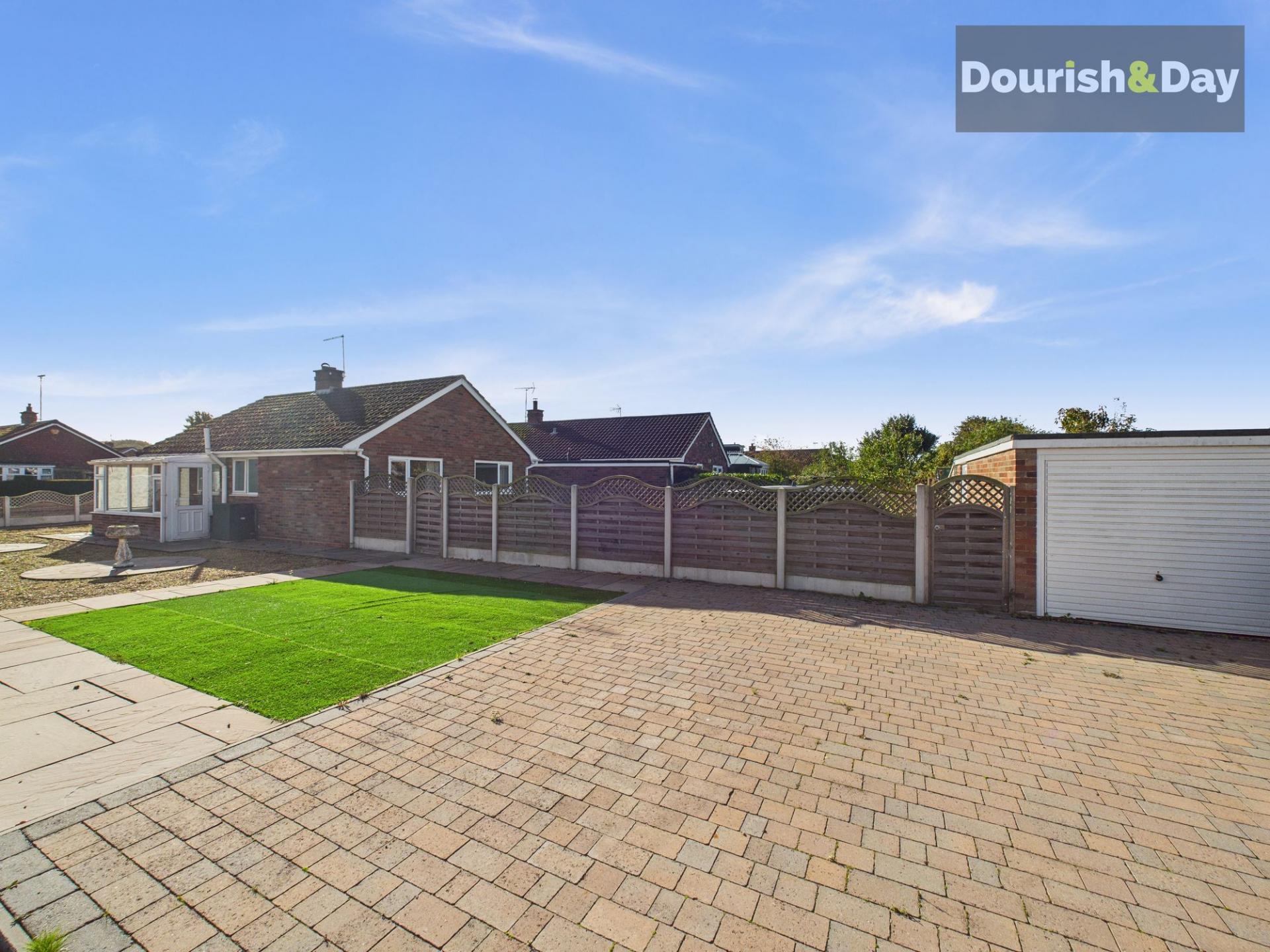 Are you looking to downsize or find a spacious bungalow with ample room? This charming two-bedroom corner plot bungalow could be perfect for you! Situated on a large corner plot, the property boasts a beautifully maintained low maintenance wrap-around front garden and offers ample off-road parking for multiple vehicles. Inside, you'll find a welcoming entrance porch, a spacious living/dining room, a kitchen, two generously sized double bedrooms and a bathroom. Externally there is a private rear garden that gives side access to a garage for additional storage or secure parking. Located in a highly desirable area, this bungalow offers convenience and tranquillity. With the added benefit of No Onward Chain, this property is ready for you to make it your own. Don't miss out—call us today to arrange your viewing appointment!