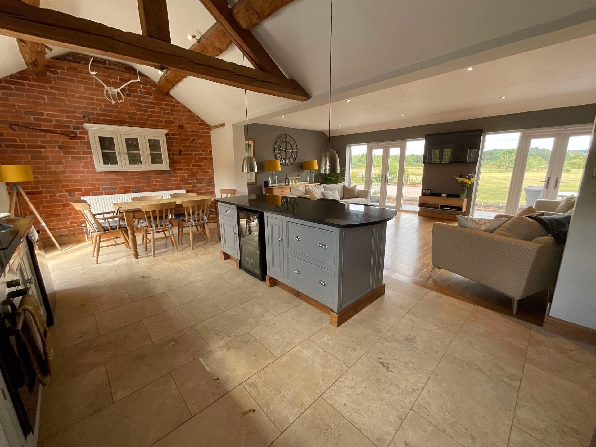- Stunning open plan living kitchen with French doors making the most of the countryside views
