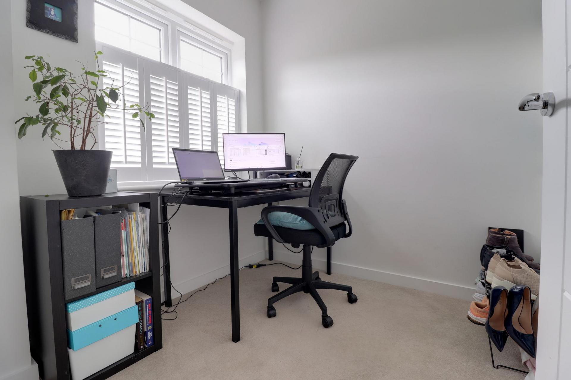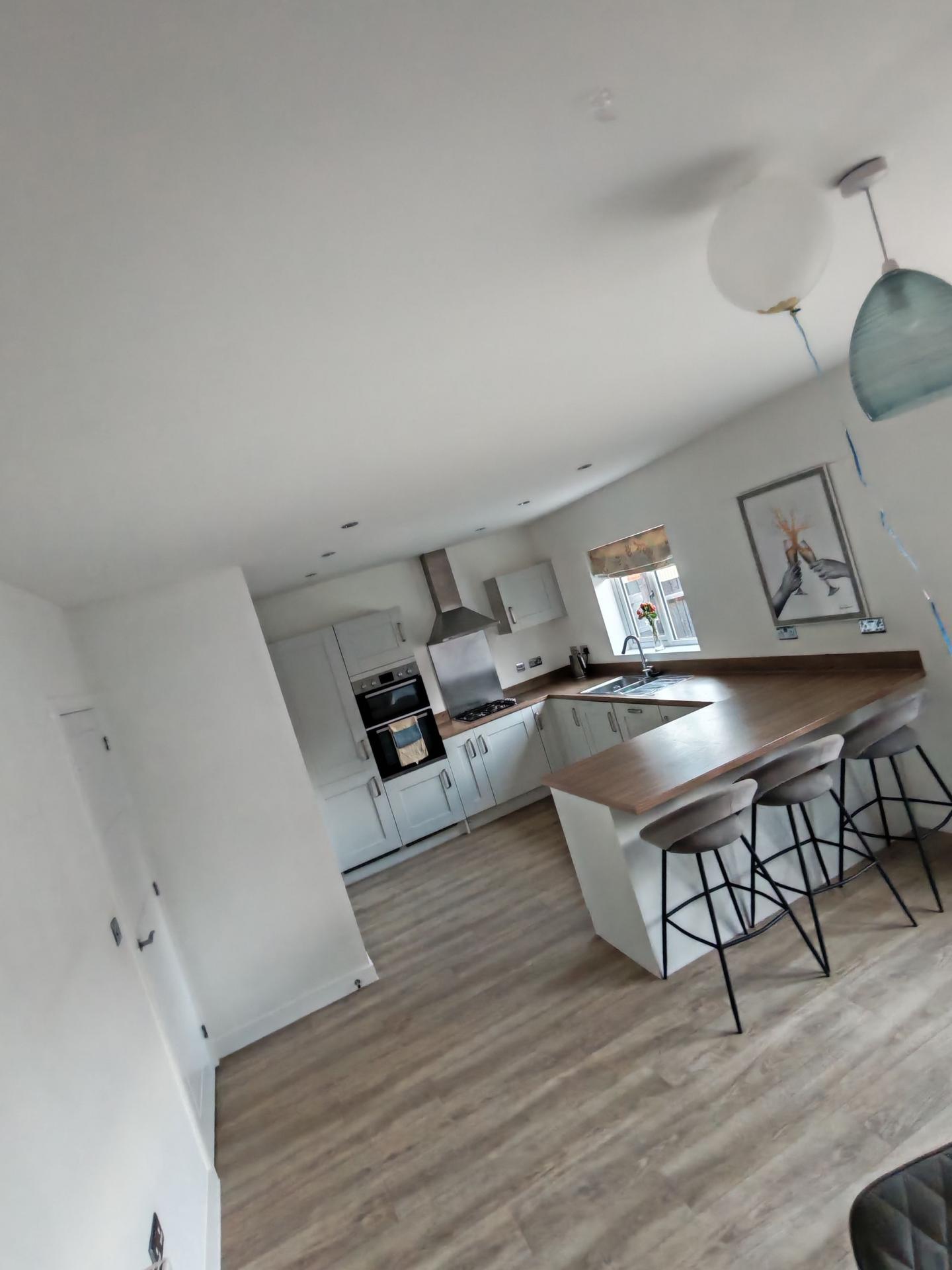 The home has an wide entrance hall, guest W/C, compact office space / playroom, spacious living room with walk in bay window, and a large open-plan dining kitchen with breakfast bar and French doors leading to the rear garden. A separate utility room, with side access door to adds convenience to everyday living.