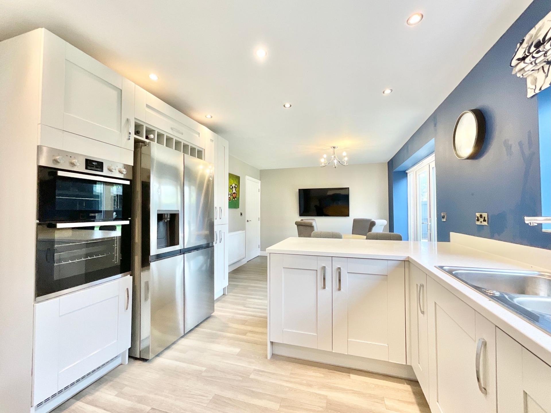- Open plan kitchen/dining/family room, large lounge, formal dining room, family room, utility room and guest WC.