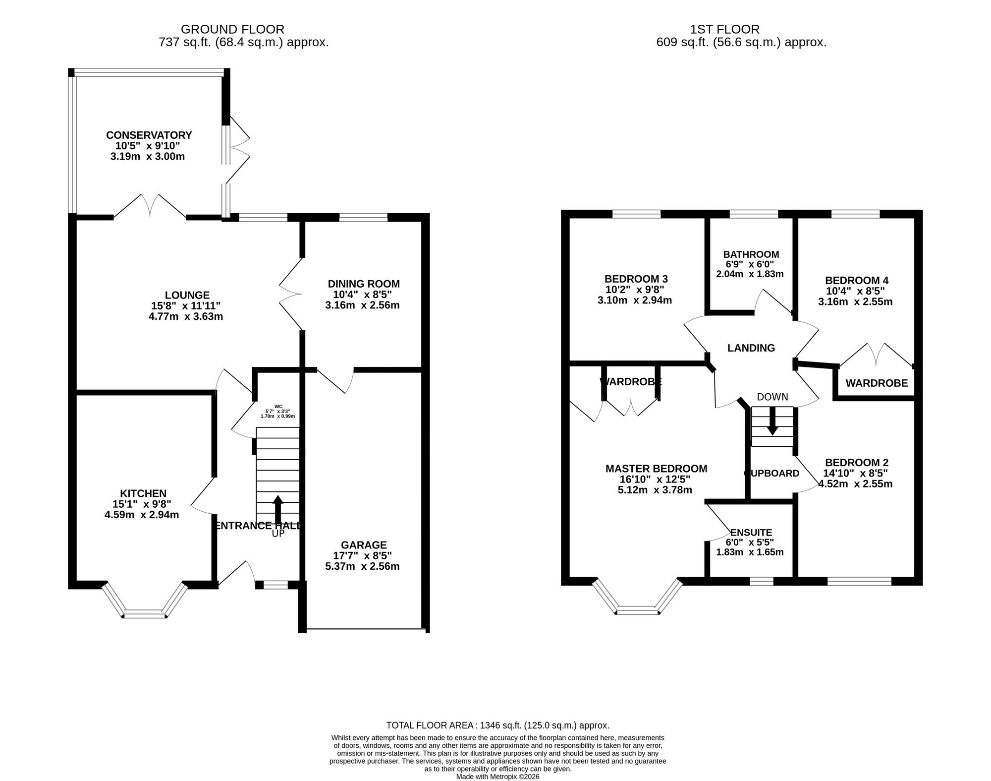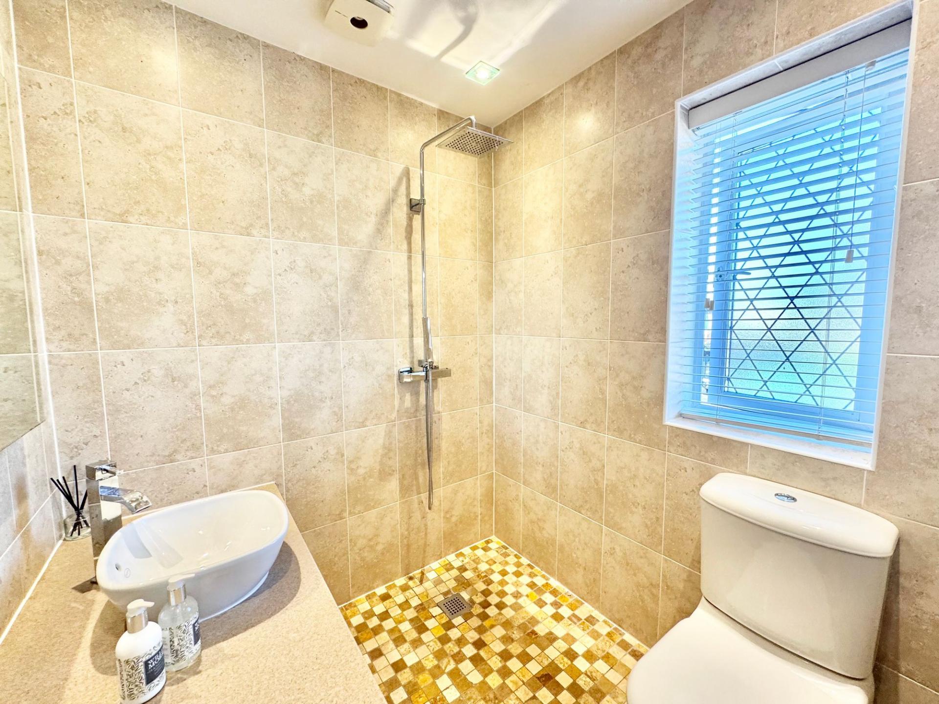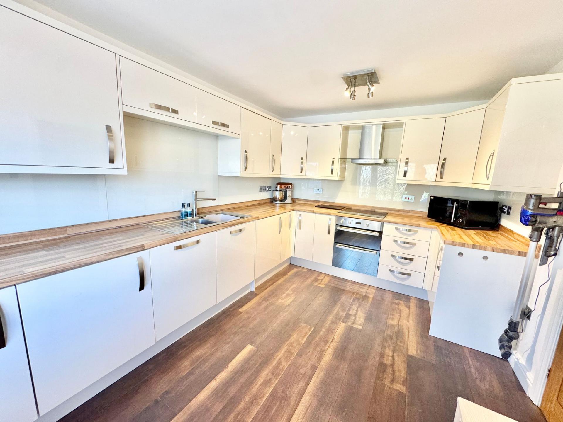 - Four generous bedrooms including a main bedroom with fitted storage and a stunning ensuite wet room with rainfall shower