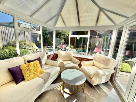 - Bright and spacious lounge with feature sage green media wall, flowing into a conservatory and dining room, perfect for entertaining and family gatherings