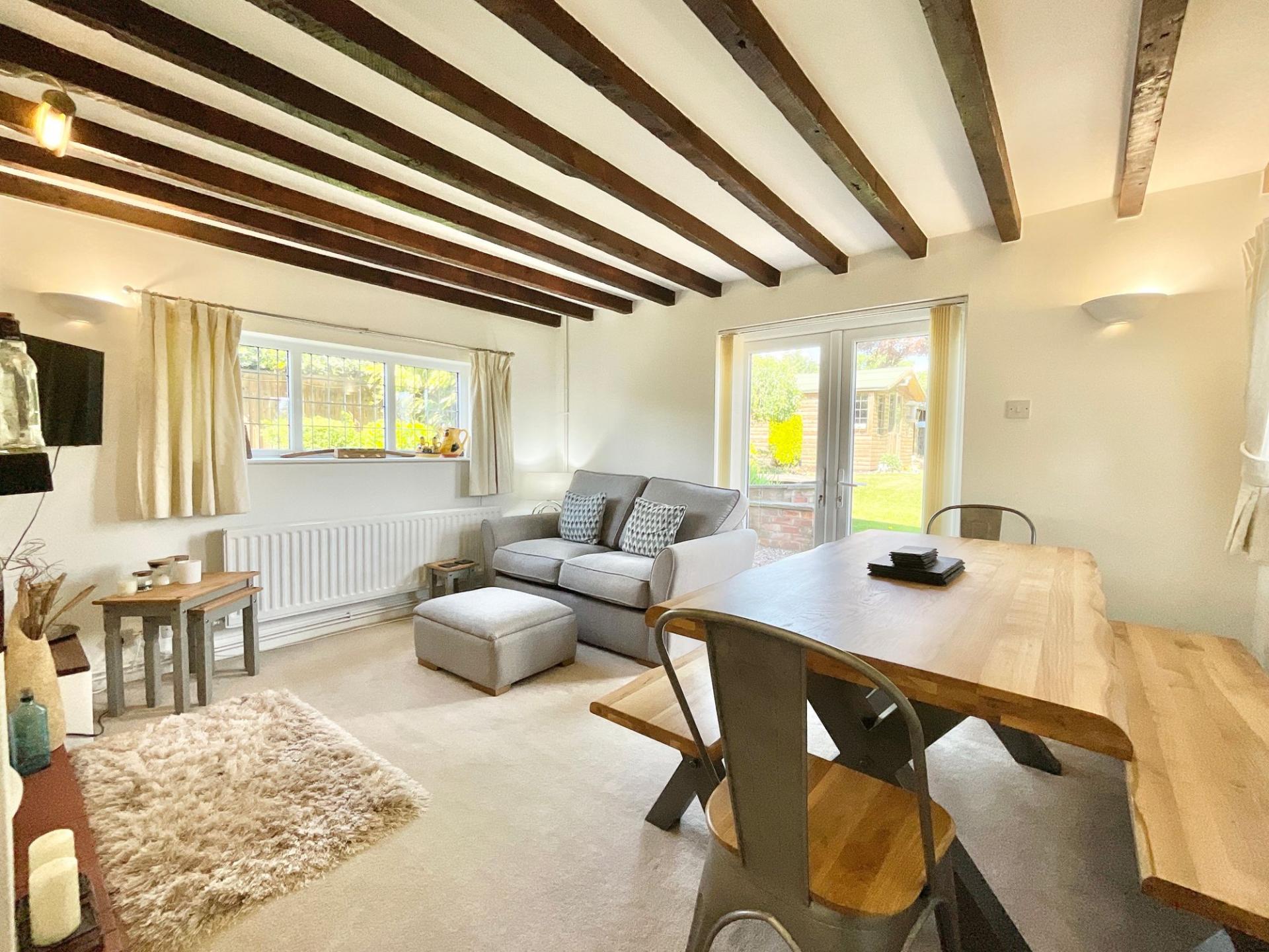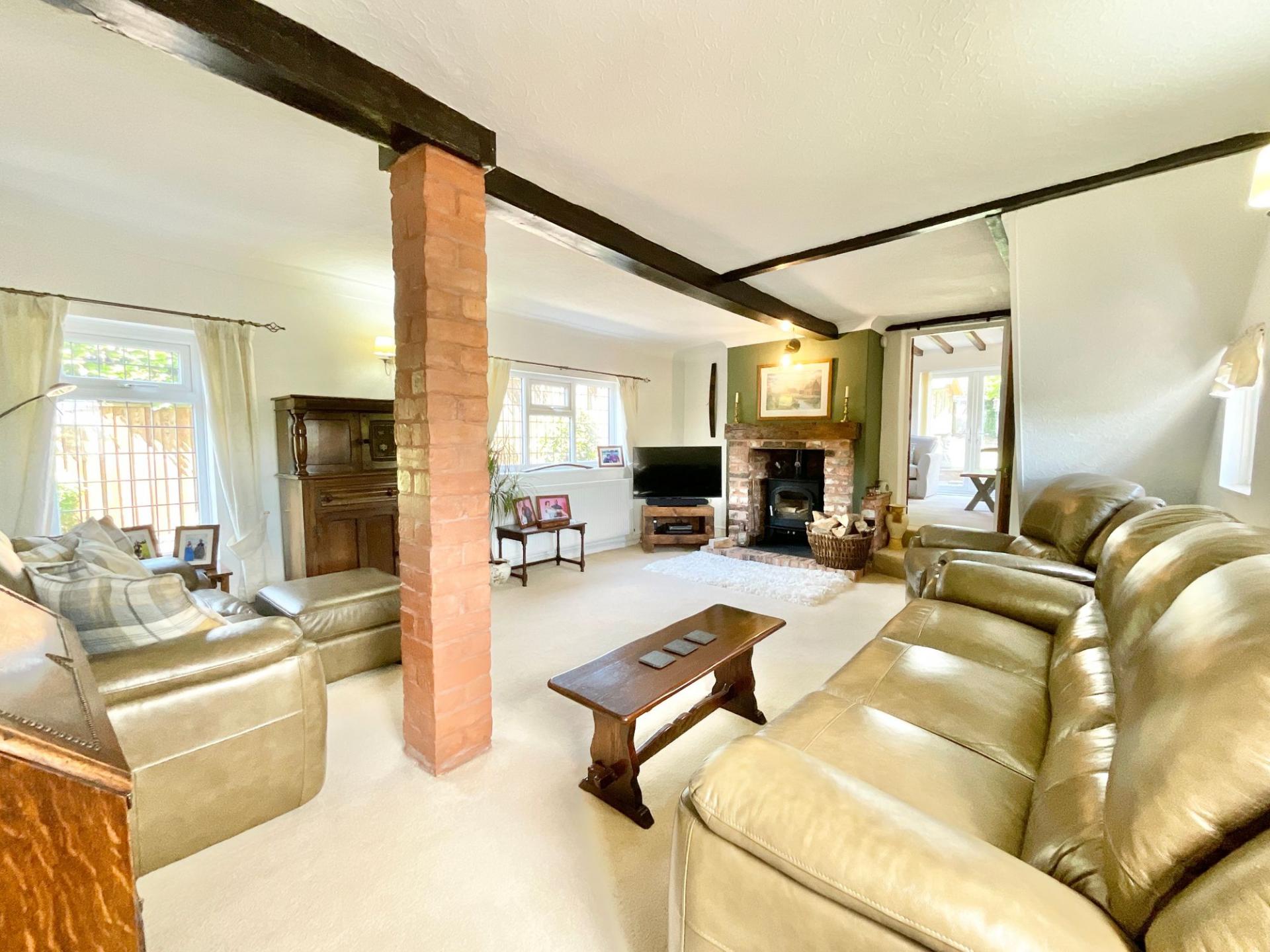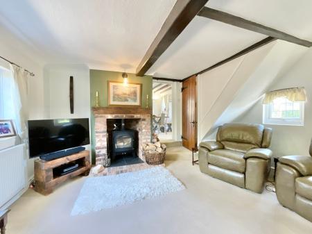 - The living room boasts a log burner as well as exposed brickwork and beams