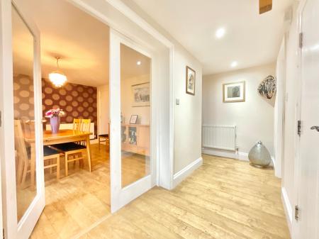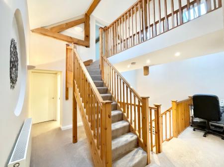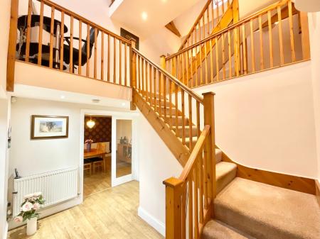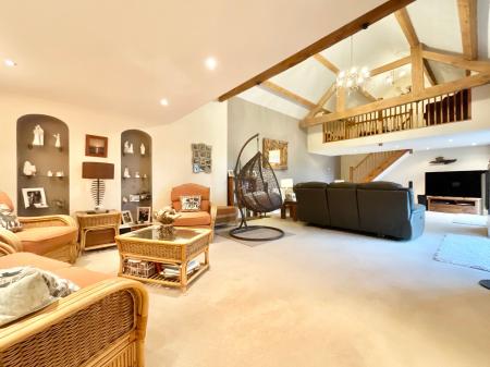 - On the ground floor find a large kitchen, utility room, dining room, cloakroom and generous living/family area with its own mezzanine.