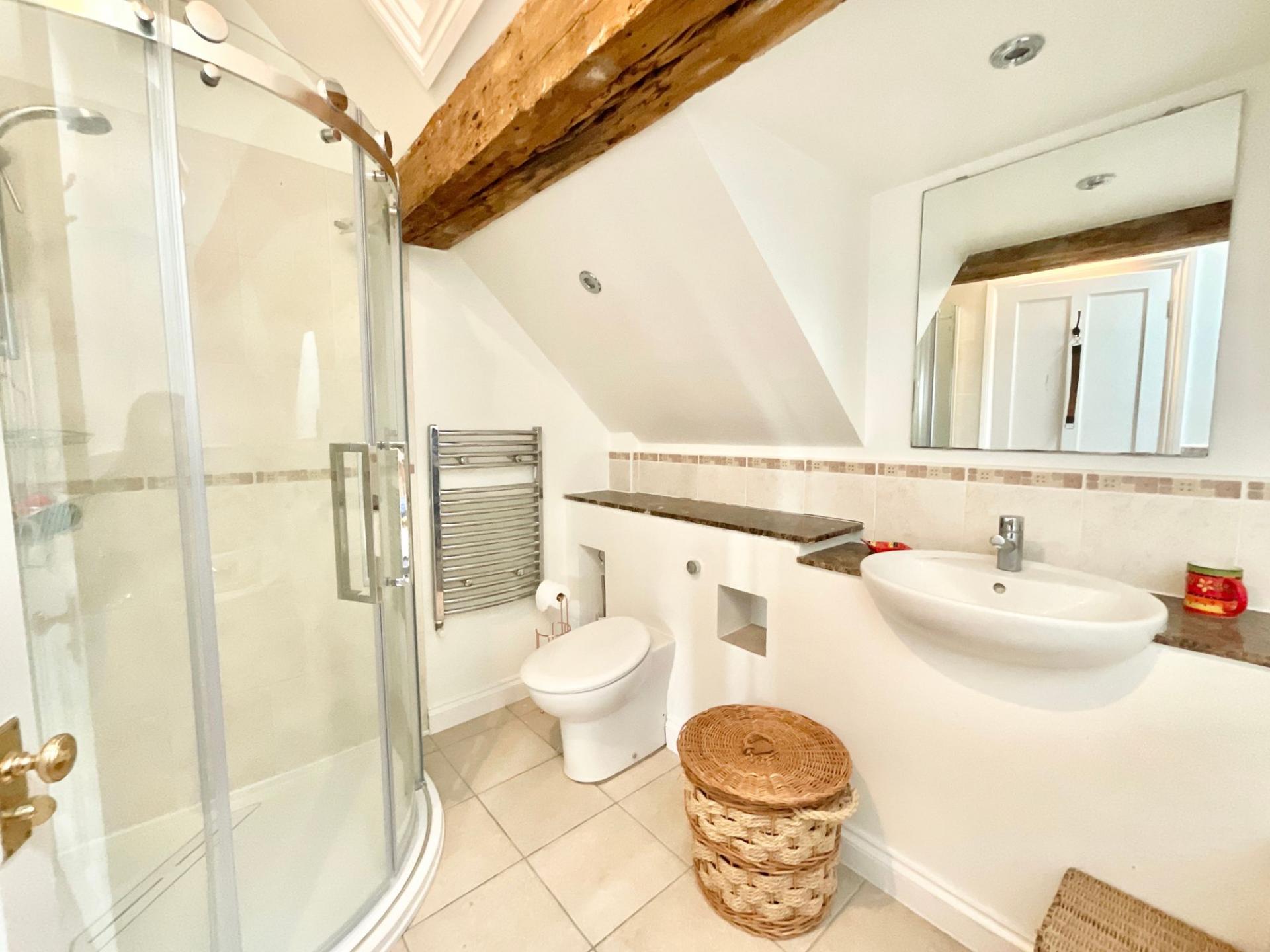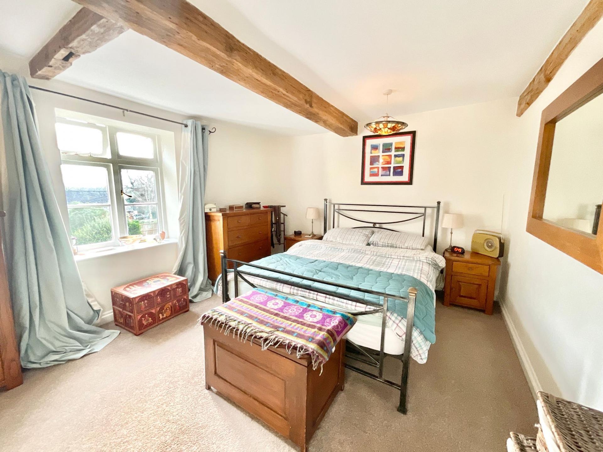 - Exceptional principal bedroom suite with exposed beams, multiple skylights showcasing stunning countryside views, and a well-appointed ensuite creating a luxurious private retreat.