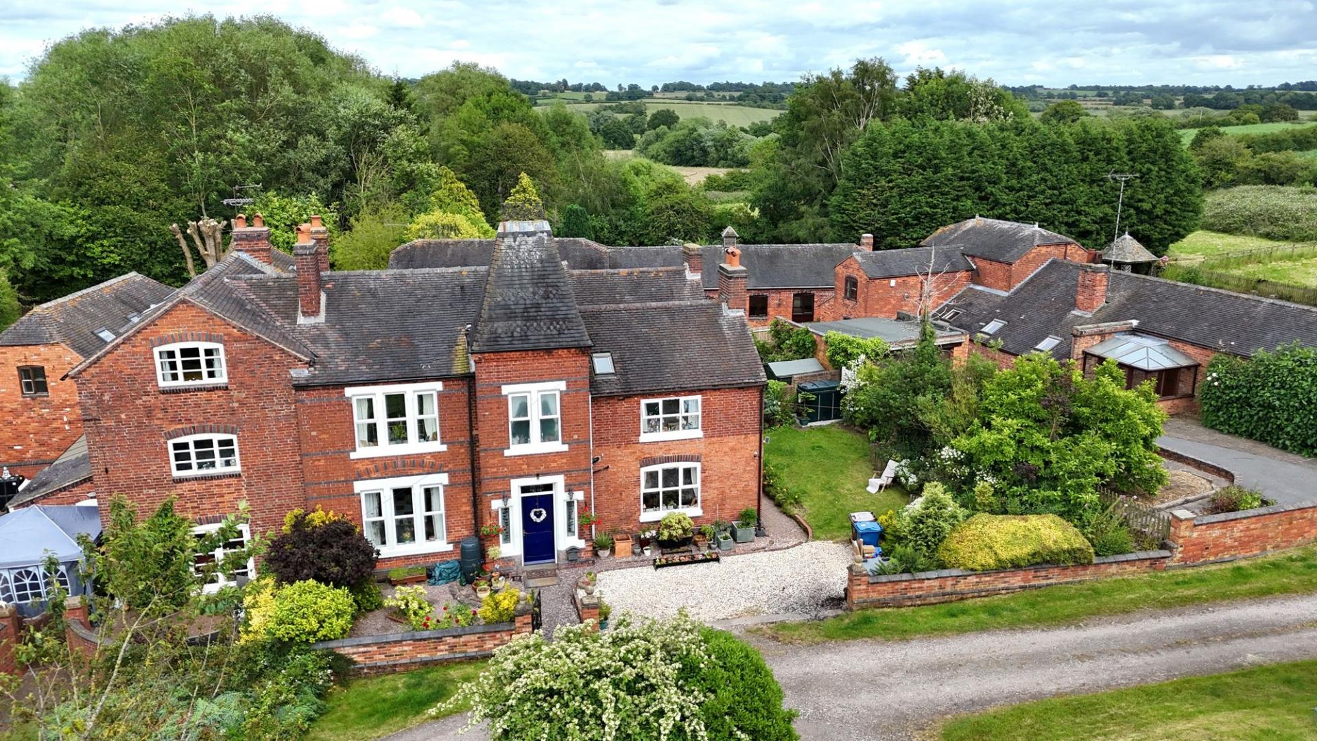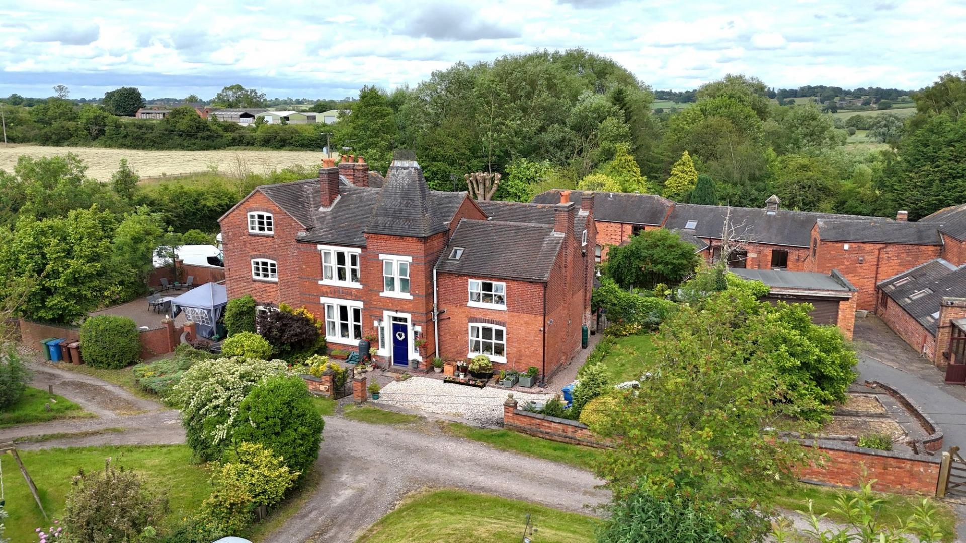 Nestled in the serene English countryside, this imposing period semi-detached country home exudes beauty and an otherworldly charm, making it an ideal family residence. As you step inside, the grand central hallway greets you with its exquisite original Minton flooring, setting the tone for the character and charm that flows throughout the home. The large living room, featuring an exposed brick chimney breast and a cast iron stove, provides a warm and inviting space to relax. Adjacent, the formal dining room is adorned with a stunning ornate cast iron open fire grate, perfect for hosting elegant dinners. The kitchen/breakfast room, with its delightful cottage style, is designed for creating family meals with ease. This space is complemented by a useful utility room and a guest WC. Ascend the grand staircase from the main entrance hall to reach the first-floor landing, where four generously sized double bedrooms await. The principal bedroom boasts an en-suite shower room, offering a private retreat. The first floor also houses a spacious family bathroom. For added convenience, a second set of stairs, originally used by staff, links the first floor with the utility and kitchen/breakfast room. Completing the internal accommodation is a fifth bedroom located on the second floor, providing ample space for the entire family. Outside, the property is approached at the end of Bishton Lane, featuring a central island of lawn and well-stocked shrub, perennials and fruit trees, with a parking area within. Additional gravelled parking space and a lush lawned garden with mature planting beds enhance the property’s front. The rear of the house boasts a well-established courtyard-style garden, complete with paved seating areas, a raised walled pond, and an array of diverse plants and shrubs. Moreton Grange Farmhouse enjoys a truly picturesque setting amidst rural countryside, while remaining conveniently close to modern amenities and commuting routes. The A51 offers excellent access to the charming canal town of Stone to the north, and to the south, Rugeley and the cathedral city of Lichfield. The A518, which winds through the beautiful Cannock Chase, leads to the county town of Stafford, offering numerous amenities including high street shops, supermarkets, a university, a general hospital, a mainline intercity railway station, and junctions 13 and 14 of the M6, providing direct access to the national motorway network and toll roads.