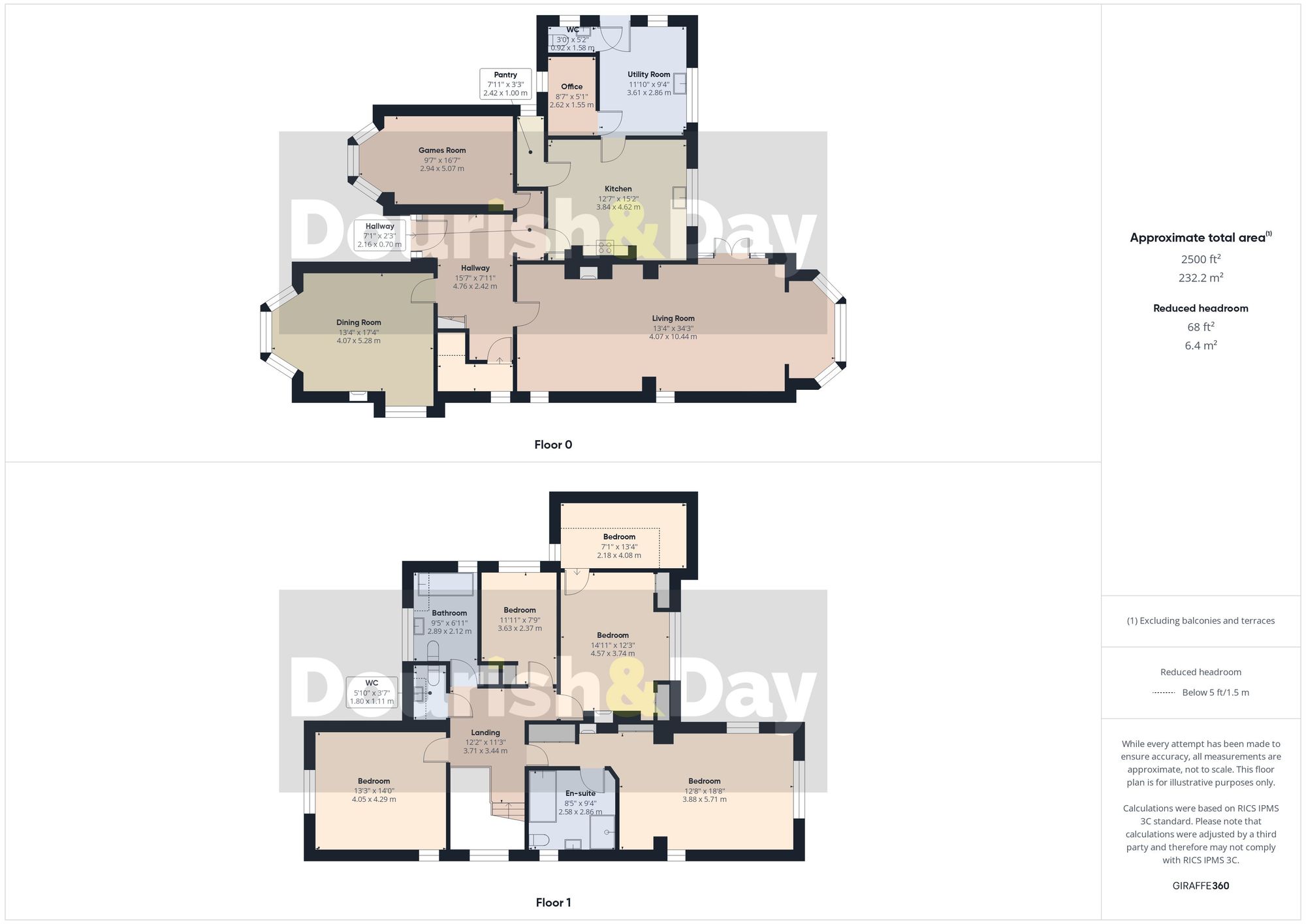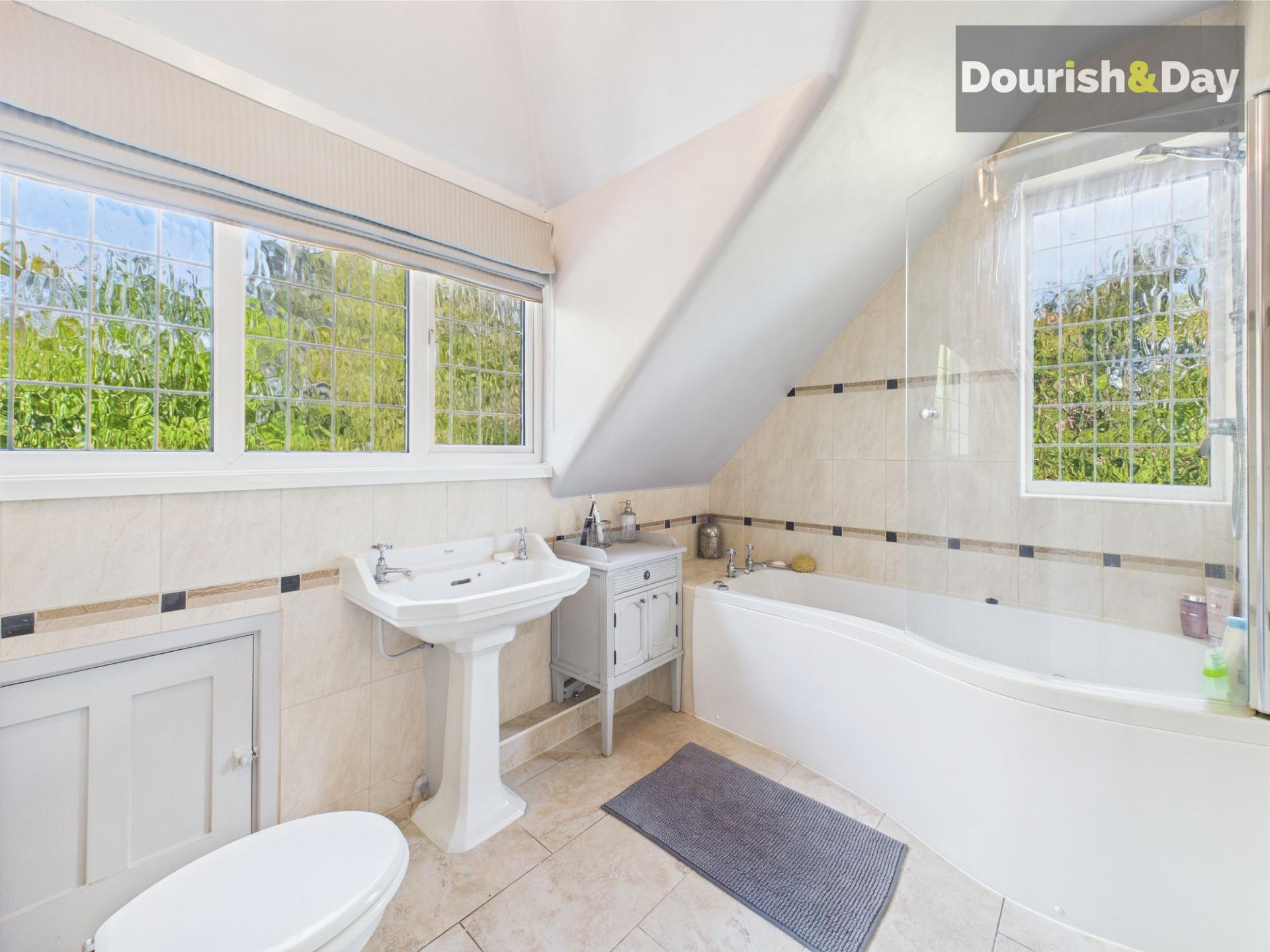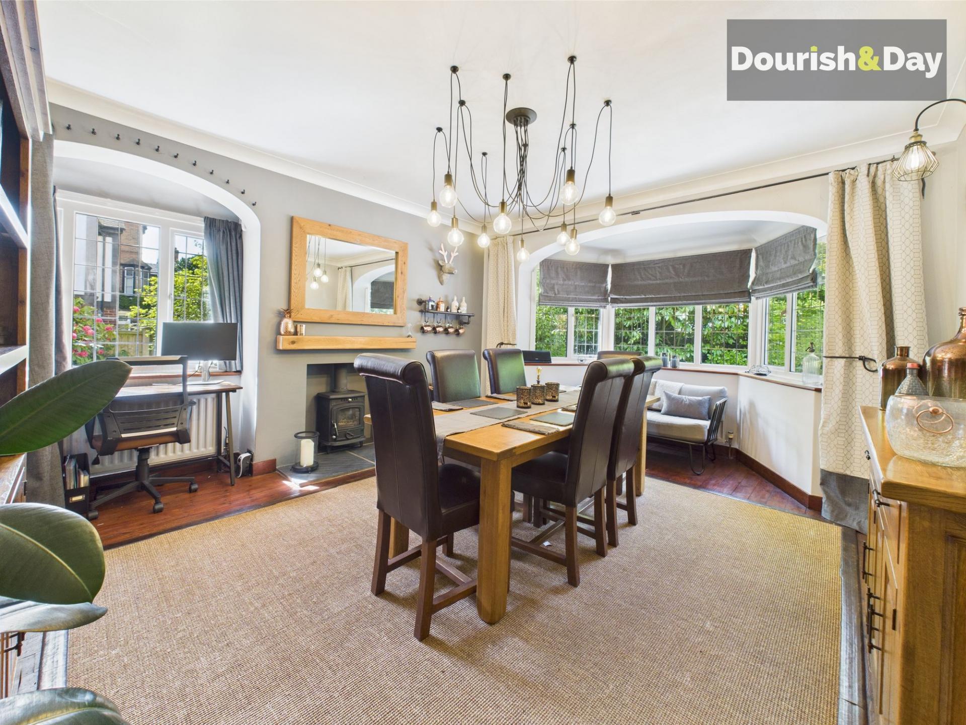 The property boasts a welcoming entrance hallway with oak flooring, leading to a range of well-appointed spaces. These include a dining room featuring a charming log burner, a games room, a spacious living room with a bay window offering views of the rear garden, a kitchen with a pantry, a utility room, an office, and a guest WC. Upstairs, the accommodation comprises five bedrooms, three of which are generously sized doubles. The primary bedroom includes an ensuite, complemented by a family bathroom and an additional separate WC.