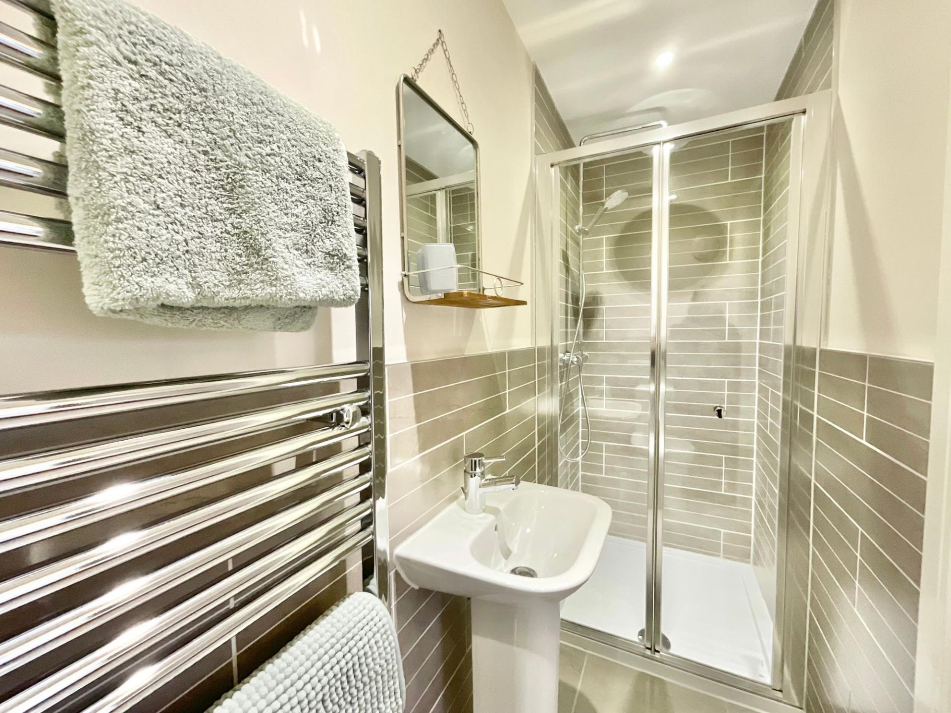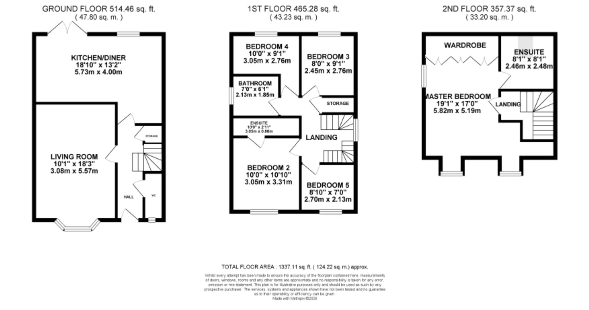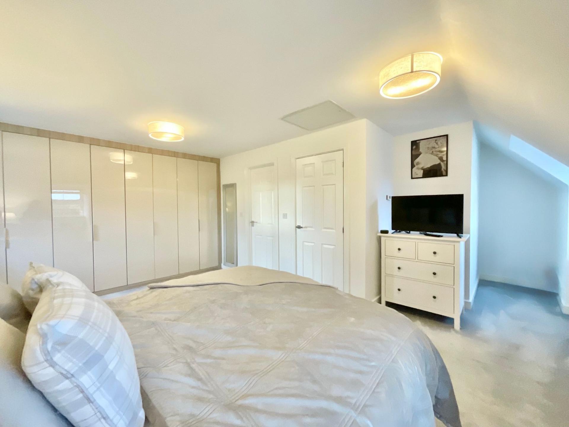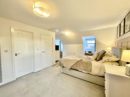- Generously sized master bedroom on the top floor with fitted wardrobes and en suite shower room, four further bedrooms, additional en suite shower room with rainfall shower and family bathroom.