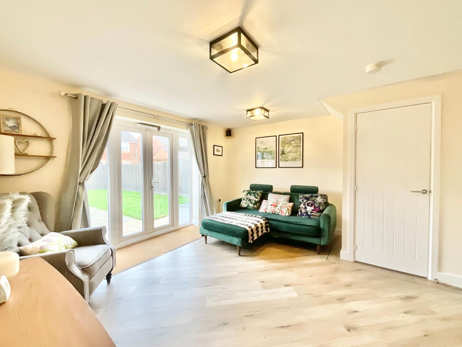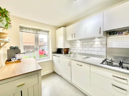 - Bright and spacious lounge/diner with glazed French doors leading to the rear garden. Practical L-shaped kitchen with sleek white cabinetry and integrated appliances.
