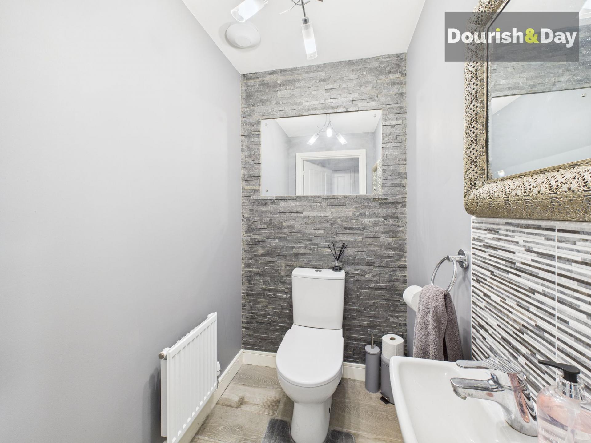 Upstairs, the first floor offers four well-proportioned bedrooms. The principal bedroom is a comfortable double and benefits from its own en-suite shower room. A second double bedroom provides excellent additional space, while the two single bedrooms are both generously sized and versatile, ideal for children, guests or home working. A modern family bathroom completes the first floor, finished in a clean, contemporary style.