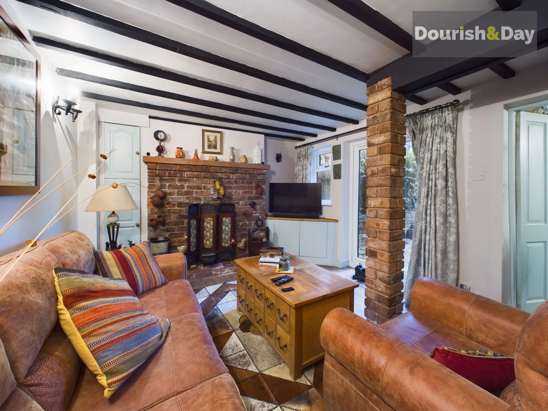 Upstairs, the principal bedroom is a spacious double with a modern en-suite bathroom. On the lower ground floor, you'll find the main living room, featuring a stunning brick fireplace with an open fire grate and French doors opening to the cottage garden. Adjacent to the living room is a versatile second bedroom, which could easily serve as a home office if needed. Outside, the delightful cottage-style garden offers paved and gravelled seating areas, a lawn, and beautifully established borders.
