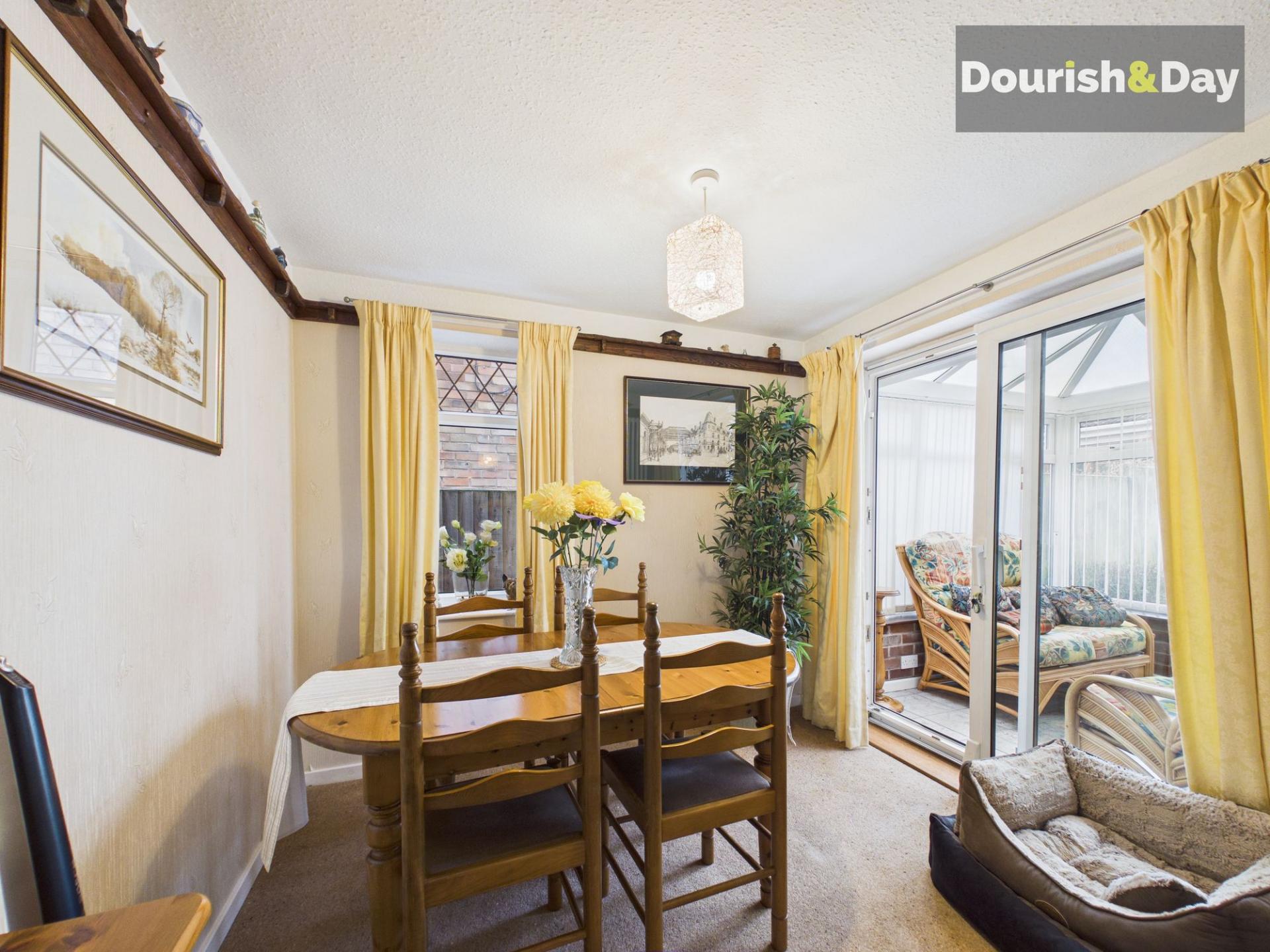 The dining room, forming part of the side extension leads directly into the conservatory. The conservatory in turn provides door access out to the garden, creating a natural flow between indoor and outdoor living.