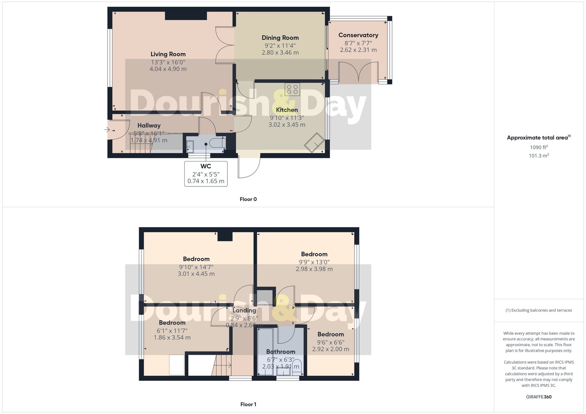 The property features an entrance hallway with a guest WC, a modern kitchen, a spacious living room, a dedicated dining room, and a conservatory. Upstairs, there are four well-proportioned bedrooms and a stylish family bathroom.