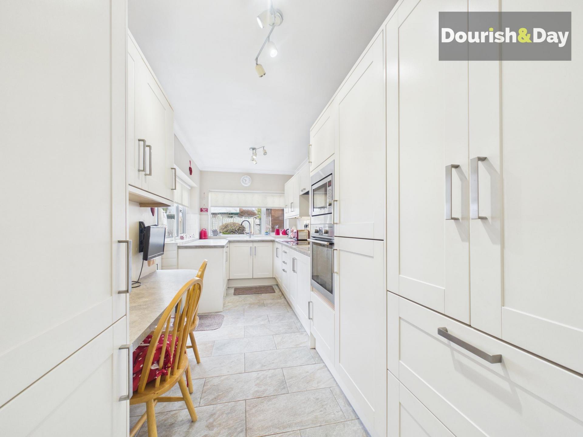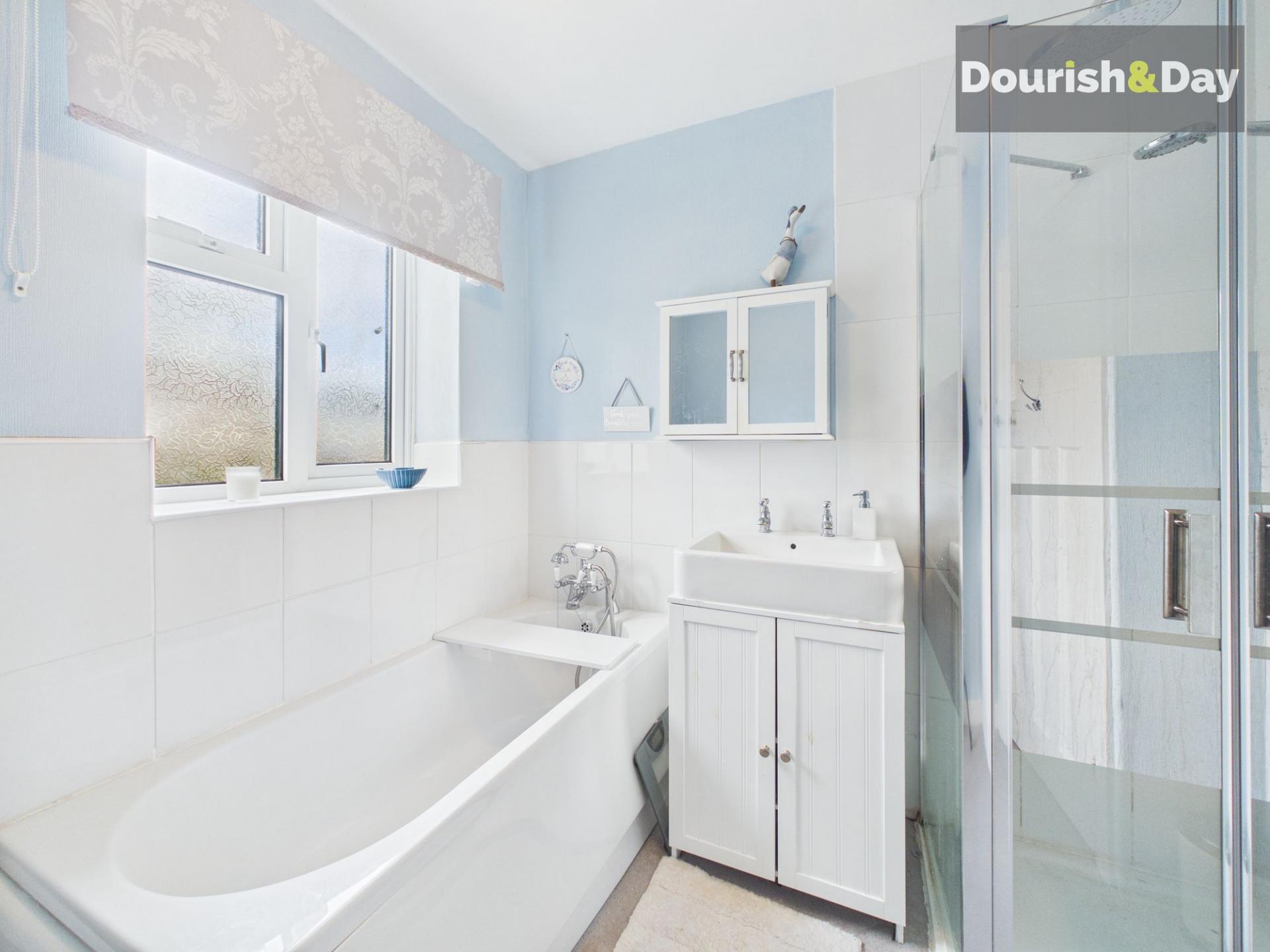 Internally, the home is well laid out. The welcoming entrance hallway leads to a convenient guest WC, a bright living room featuring an attractive bay window, and a separate dining room – ideal for entertaining or family meals. The kitchen is fitted with a range of units and benefits from built-in appliances, providing a practical and stylish space for cooking. Upstairs, there are three well-proportioned bedrooms, two of which are comfortable doubles, along with a family bathroom.