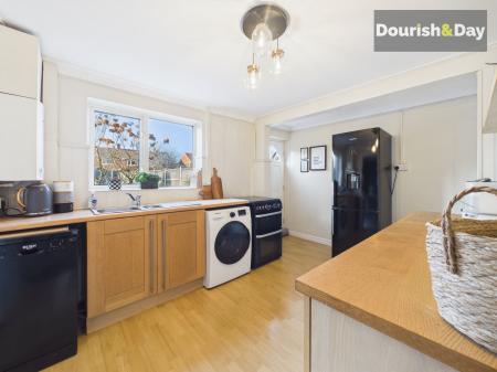 Internally, the home offers well-balanced living space throughout. An entrance porch leads into a welcoming hallway, opening into a bright dual-aspect living and dining room - an ideal space for both relaxing evenings and entertaining friends. The kitchen sits to the rear, offering ample storage and workspace, while an additional hallway provides valuable utility and storage space, keeping everyday life neatly organised. Upstairs, there are three generously sized bedrooms, all offering comfortable accommodation, along with a family bathroom and separate WC.