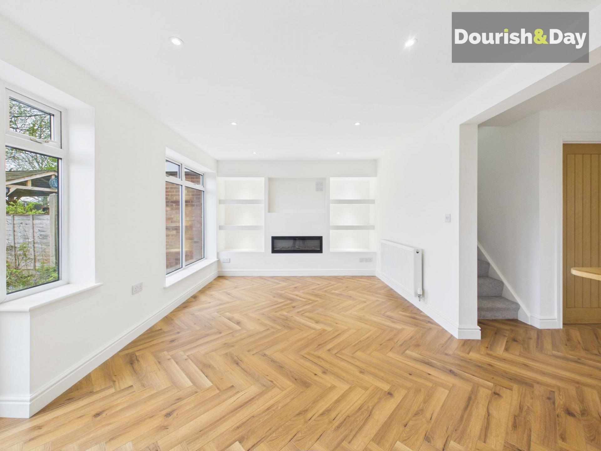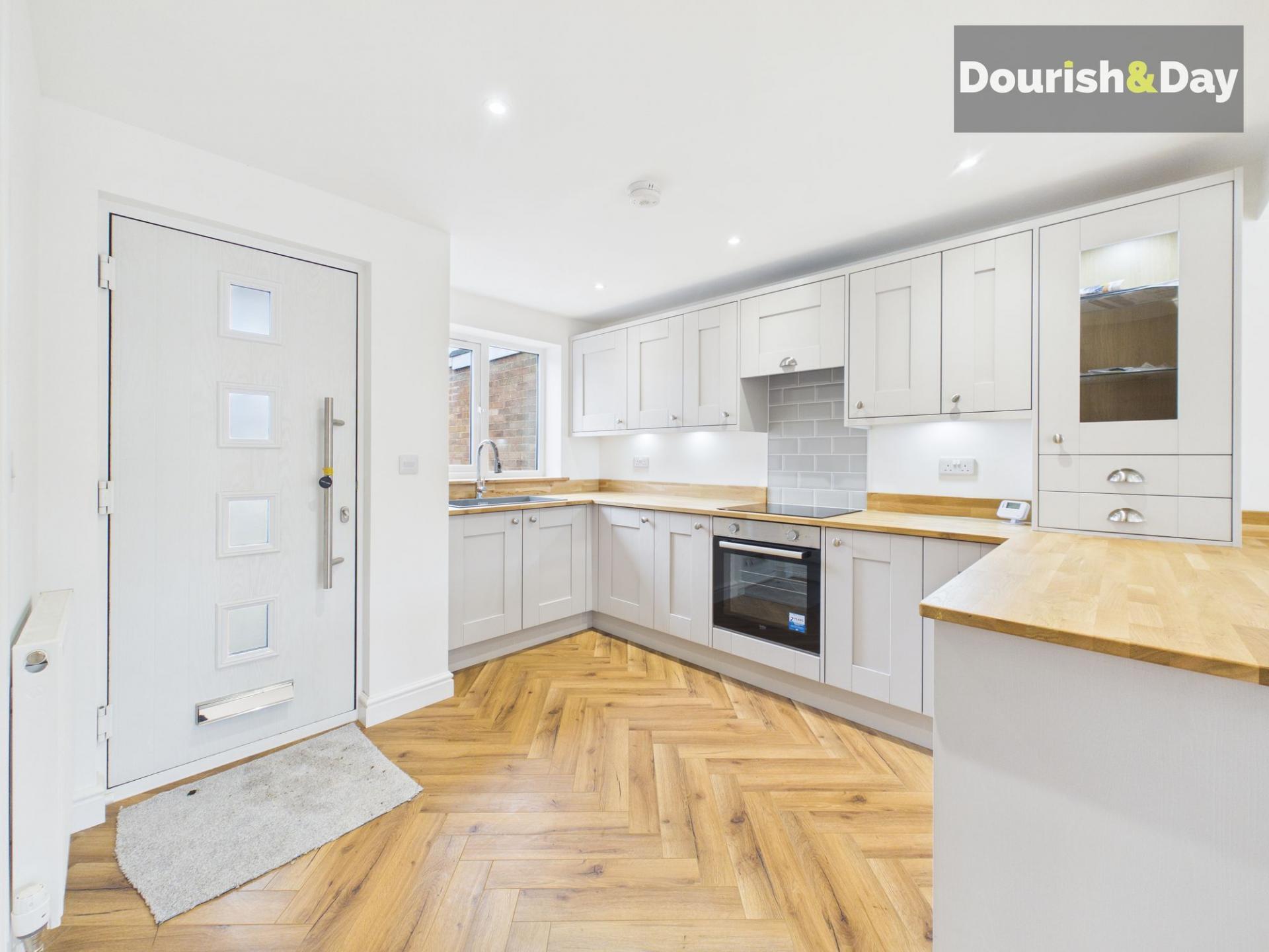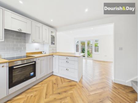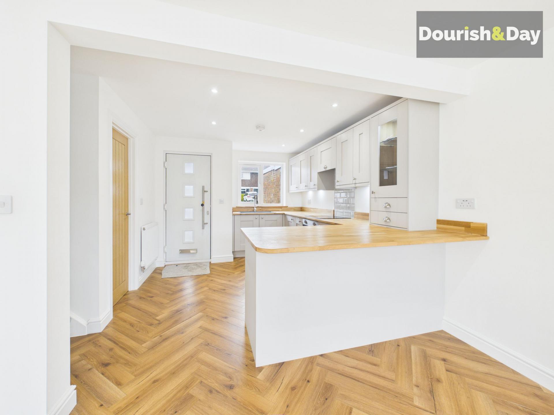 Step inside through the newly fitted composite front door and straight into the heart of the home—an impressive open-plan living, dining and kitchen space. Finished with herringbone wood-effect flooring throughout, this space has been thoughtfully designed to combine style with practicality.
