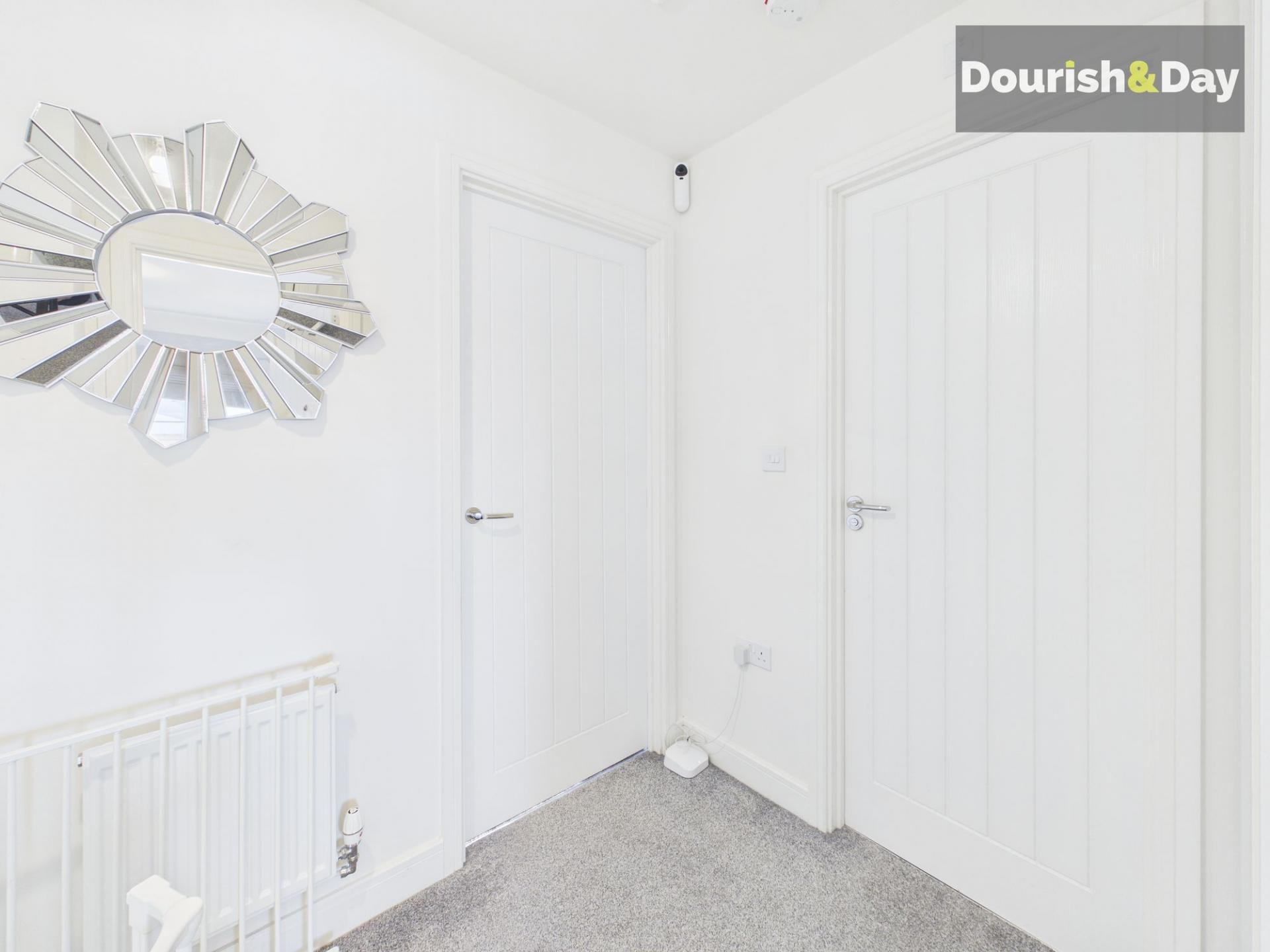 The property is approached via a two car driveway, with a natural flower bed and paved pathway leading to the front entrance. Step inside and the entrance hallway provides access to the staircase rising to the first floor along with a cupboard housing the electric fuse box.