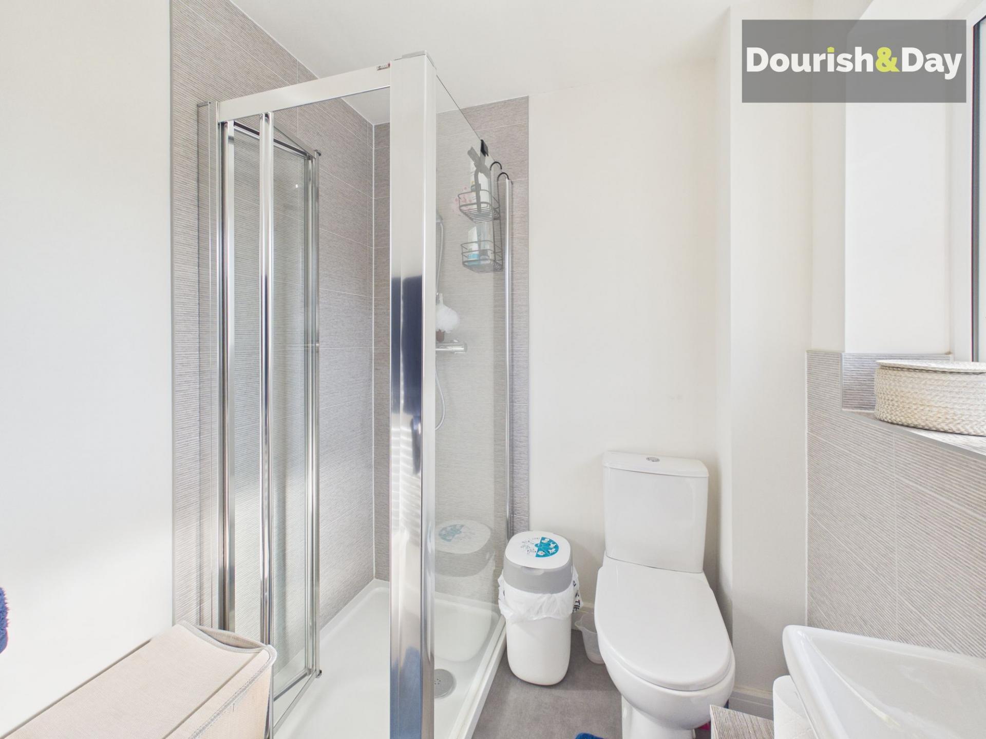Upstairs, the principal bedroom is a bright double featuring built in wardrobes, drawers and a vanity area, along with the benefit of an en suite shower room. The second bedroom is another comfortable double with integrated sliding door wardrobes, while the third bedroom is a generously sized single.