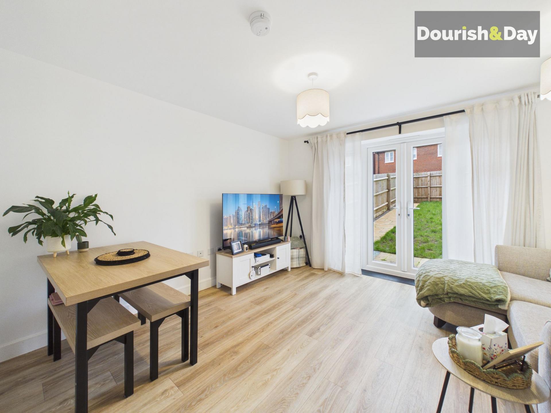 Internally, the property is well presented throughout. The ground floor comprises of a welcoming entrance hallway with guest WC, a modern fitted kitchen complete with built-in appliances, and a bright open-plan living/dining room. The living space benefits from useful storage and French doors that open onto the rear garden. Upstairs, there are two generous double bedrooms and a contemporary family bathroom.