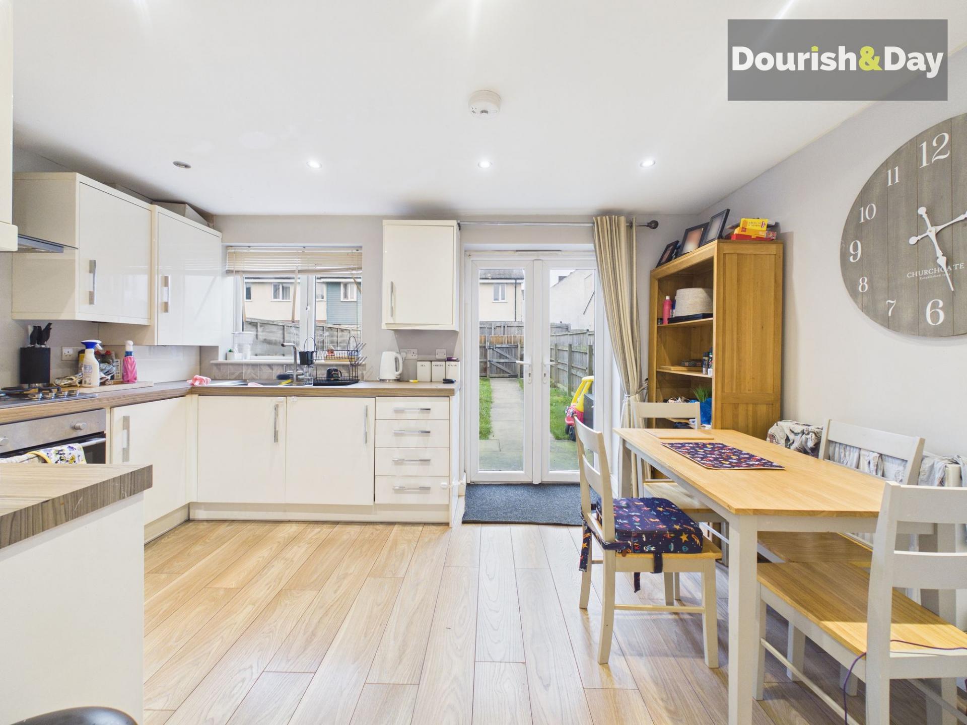 The accommodation comprises a welcoming living room, a guest WC, and a modern kitchen diner complete with built-in appliances, providing a practical and sociable space for everyday living and entertaining. To the first floor are three well-proportioned bedrooms, two of which are doubles, along with a contemporary family bathroom.