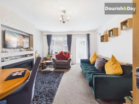 To the rear sits the lounge, a bright and spacious reception room featuring a contemporary wall mounted electric fire. A double glazed window and door provide views and access to the rear garden, while the room also offers plenty of space for a dining table if desired.