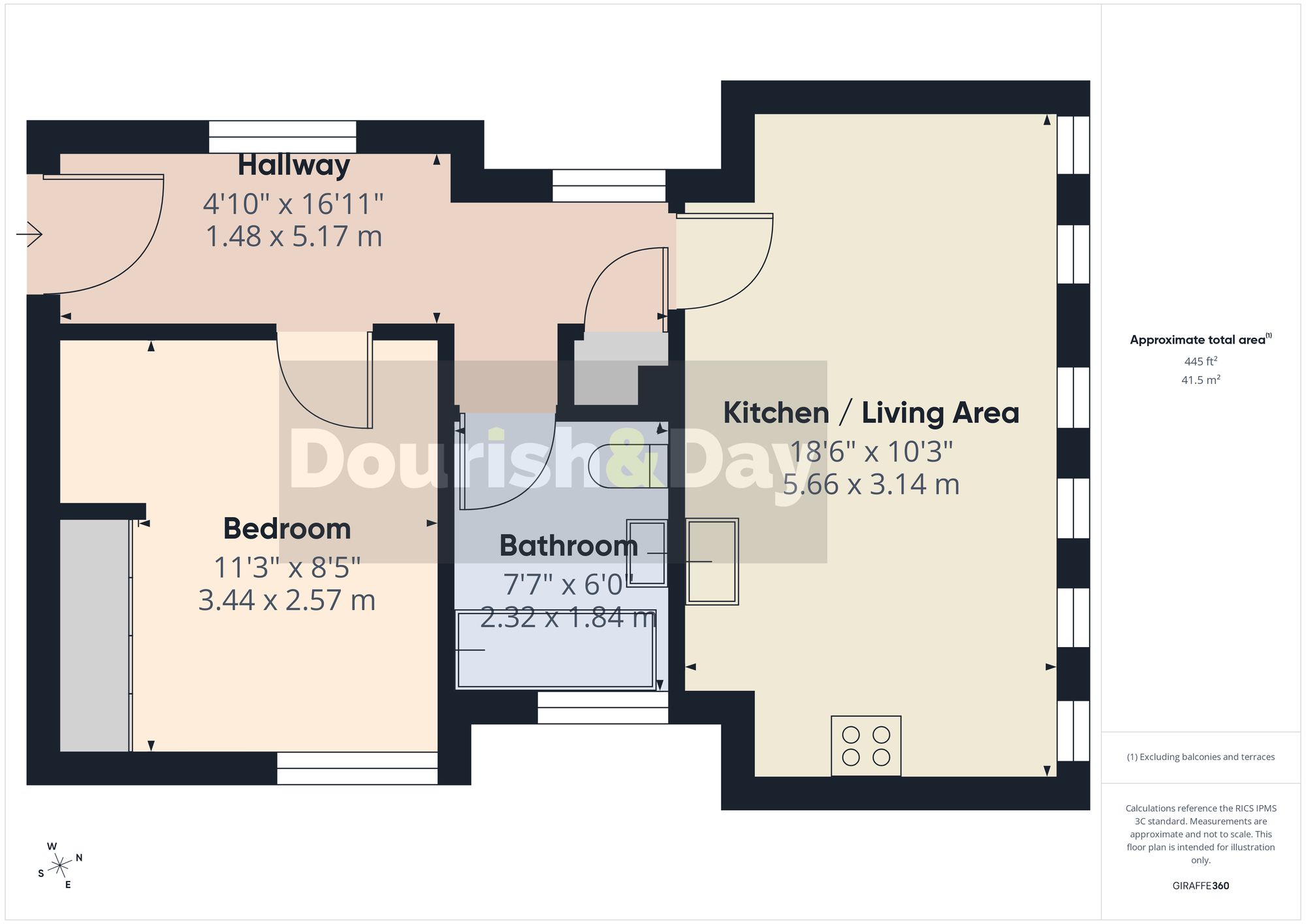 The accommodation comprises an entrance hallway with useful storage space, a spacious double bedroom complete with built-in wardrobes, and a modern bathroom. The standout feature of the apartment is the bright and airy open-plan kitchen, living and dining area, flooded with natural light.