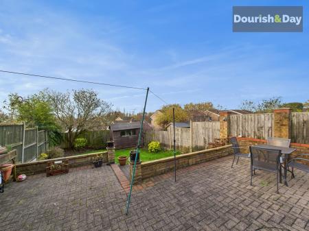 - Lovely rear garden with patio, lawn, mature tree & storage shed