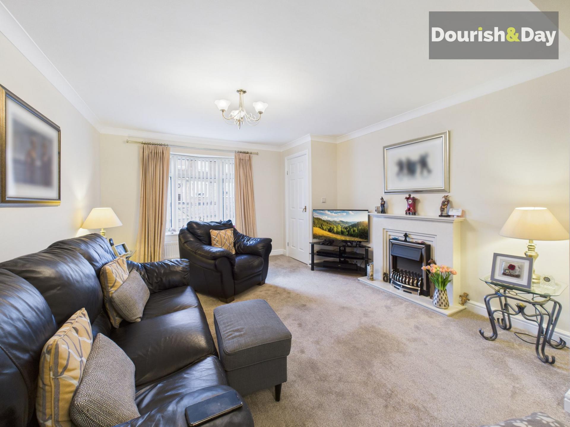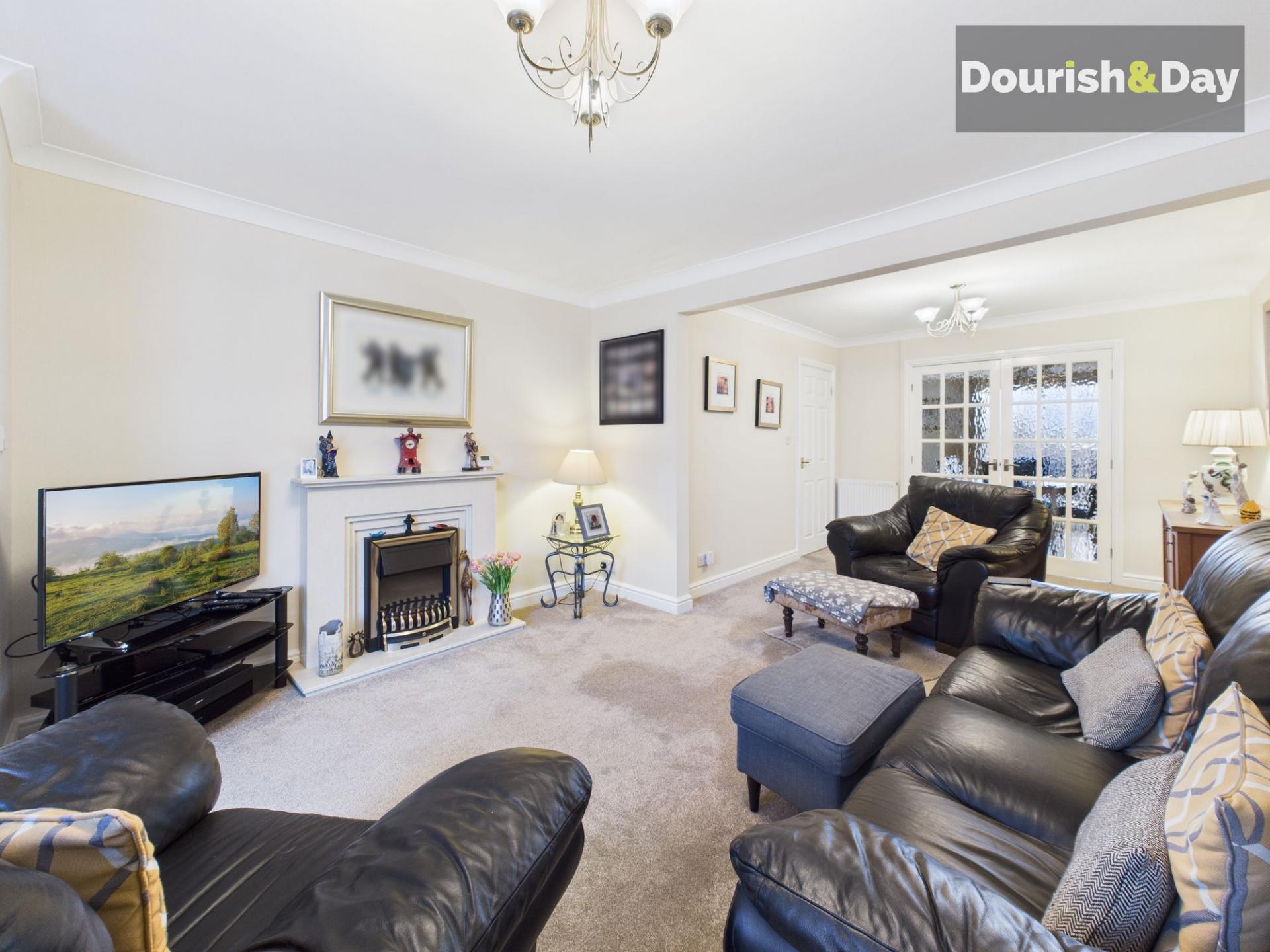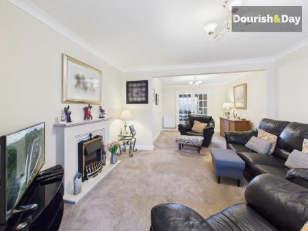 - Bright lounge with feature fireplace & double doors to dining room