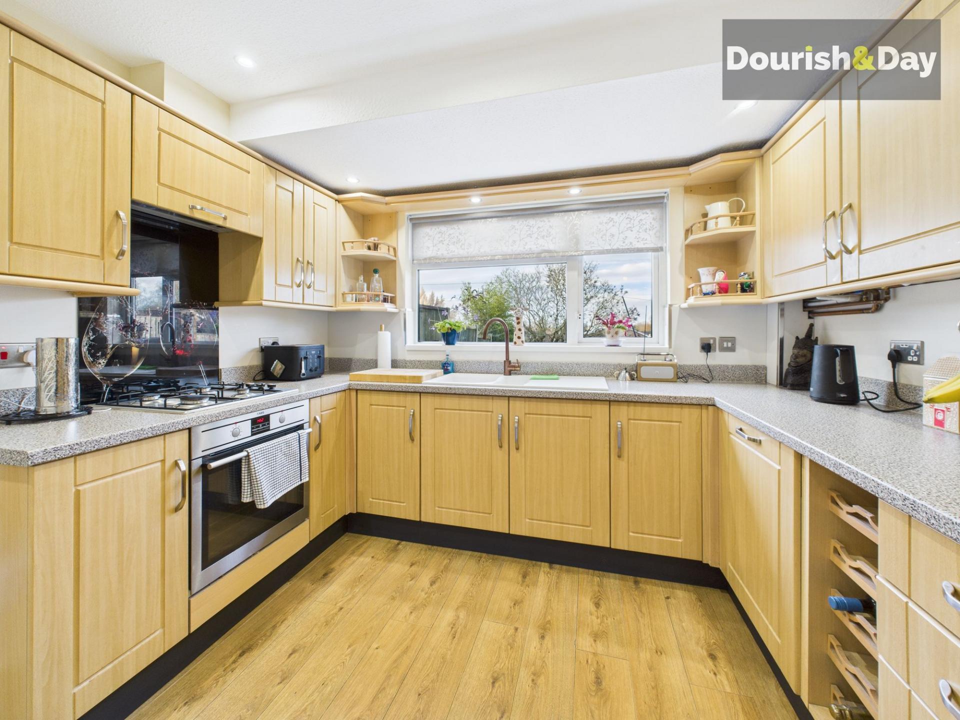 - Well-designed kitchen with integrated oven, dishwasher & 4-burner hob