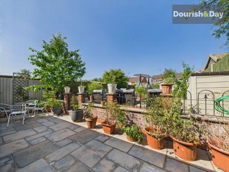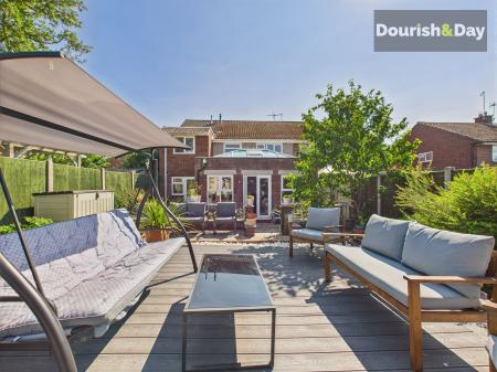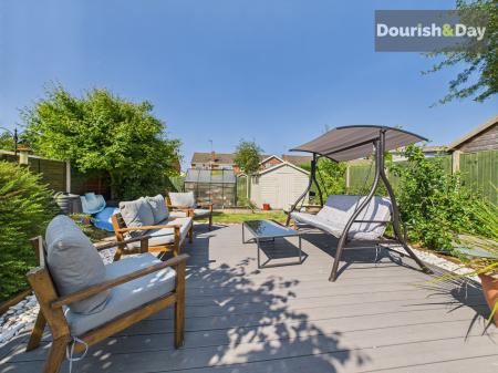 To the front, a full-width block-paved driveway offers generous parking, along with two EV charge points and access to a bike garage or store. The rear garden has been beautifully designed, featuring a paved patio, raised decked seating area with white pebbles surround, a small lawn and planting beds. The home also benefits from solar panels, adding a sustainable touch.