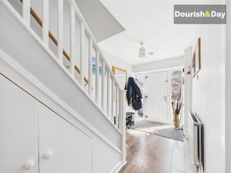 Upstairs there are four well-proportioned bedrooms, three with built-in or fitted wardrobes. The principal bedroom includes an en-suite shower room, and the modern family bathroom completes the accommodation.