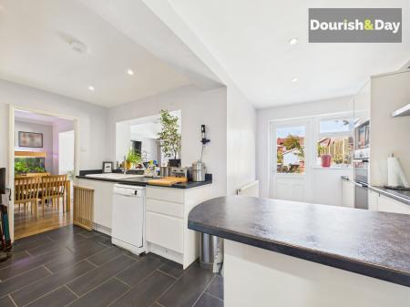 The heart of the home is an impressive L-shaped rear space, with defined areas for dining and sitting. Double doors open onto the garden, filling the room with light and creating a perfect indoor-outdoor flow for family life or entertaining.