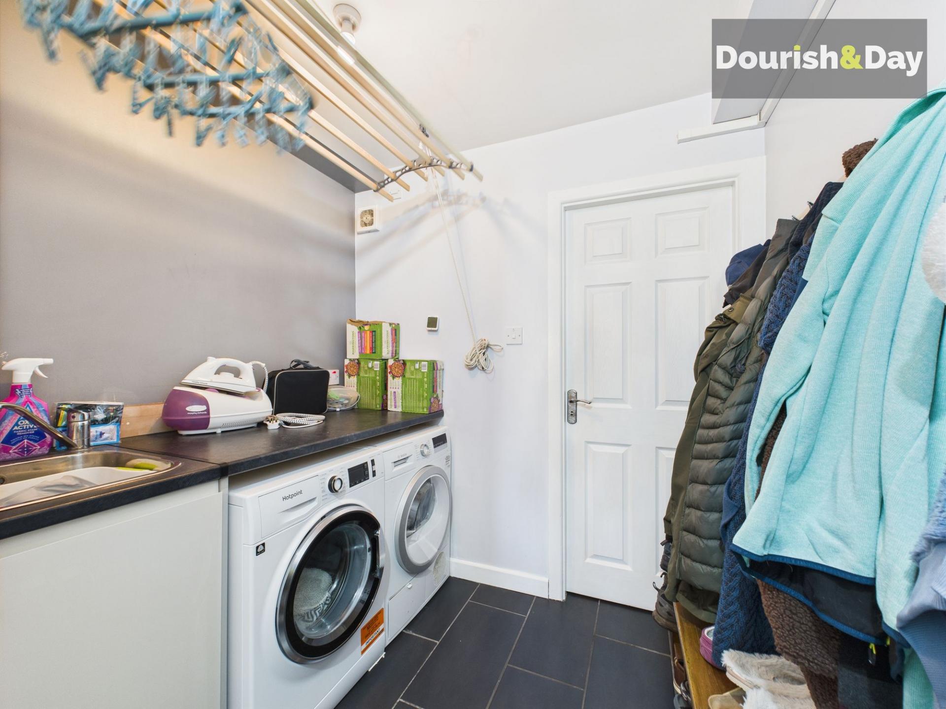Step inside to a welcoming entrance hall with doors leading to a bright, spacious front living room. Built-in cupboards and bookshelves sit either side of the chimney breast, adding a warm touch. The extended kitchen provides plenty of worktop and storage space, with an integrated double oven, hob and hood, plus room for your appliances. Off the kitchen, you’ll find a useful utility room and a guest WC.