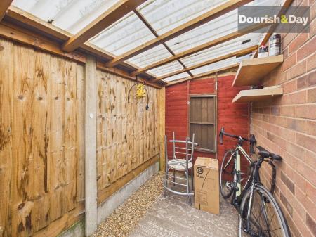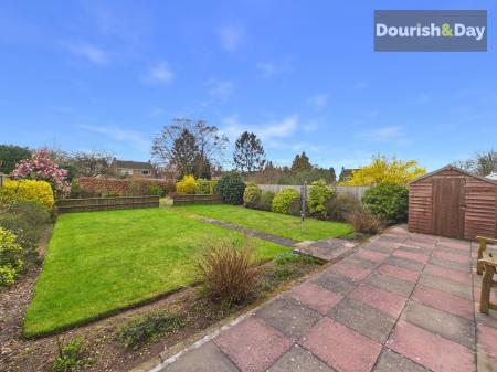To the side of the house sits a shed positioned just off the initial paved area, while the garden continues around to the rear of the garage where you’ll find further lawn space, mature planting and an additional lean-to storage area.