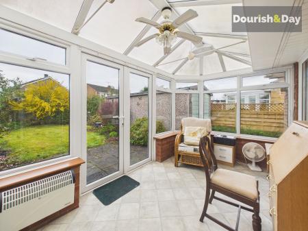 The conservatory provides a lovely additional reception space overlooking the garden, with double French doors opening out to the patio.