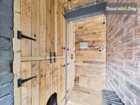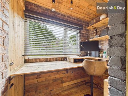 Life’s just peachy on Peach Avenue – and this charming home is ripe for the picking. This three bedroom semi-detached property has been lovingly maintained and thoughtfully improved, offering a warm and welcoming space for its next owners. The layout flows beautifully, beginning with an entrance hallway that leads to a living room, complete with a log-burning stove and double doors opening directly onto the rear garden, perfect for enjoying the outdoors from the comfort of your home. The modern fitted kitchen features sleek white gloss fronted units paired with solid oak worktops and is fully equipped with integrated appliances including twin ovens, a five-ring gas hob, dishwasher, microwave and larder-style fridge and freezer. From here, a door opens into a rear lobby and home office, creatively finished with reclaimed pallet wood, providing an inspiring space for those who work from home. A convenient guest WC completes the ground floor.