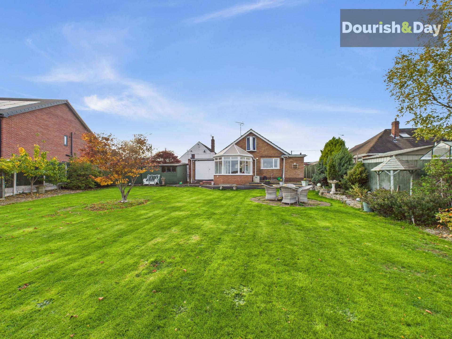 - Stunning rear garden with patio, decking, lawn, and summer house