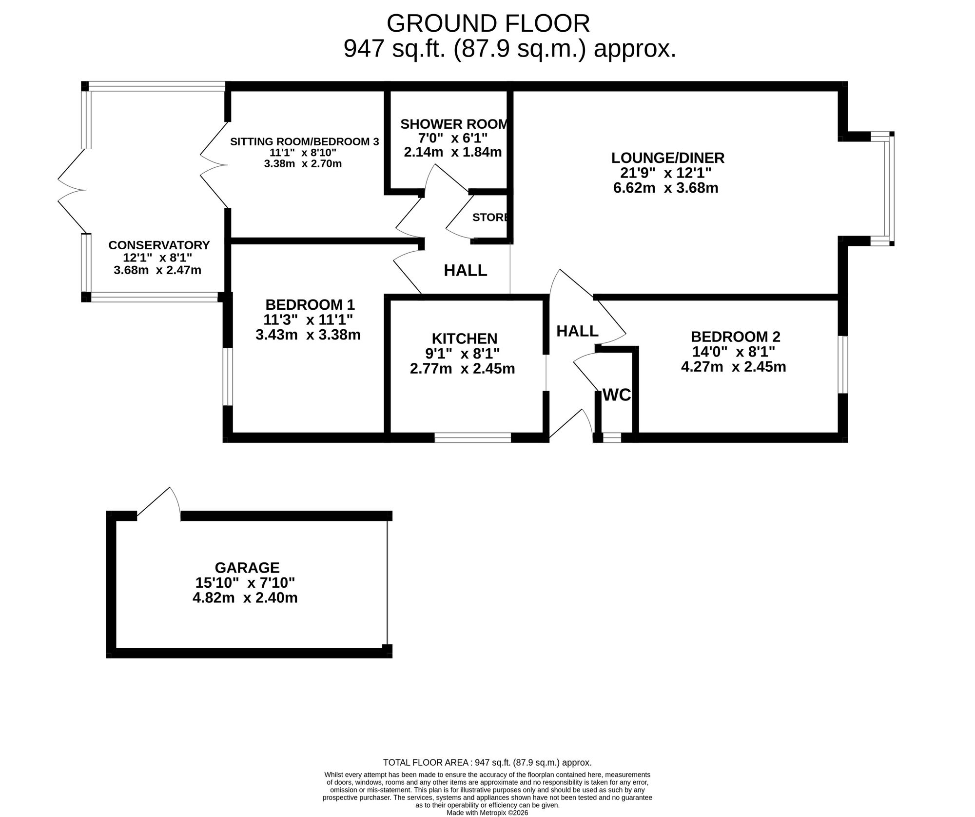 - Bright, open-plan lounge/diner with a feature bay window and fire surround, practical U-shaped kitchen, and a spacious conservatory.