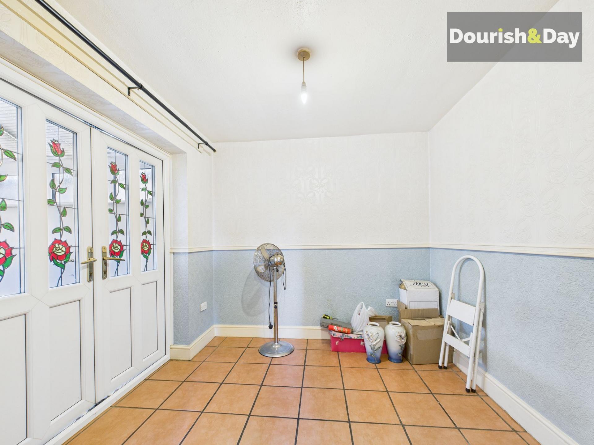 The layout continues to flow naturally through to the dining room, positioned adjacent to the kitchen. Double doors open into the conservatory, which is an excellent size and enjoys direct access out to the rear garden, creating a versatile additional reception space that can be enjoyed throughout the year. Completing the ground floor is a good-sized utility room with fitted units, worktop space and room for appliances, adding practicality to the home.