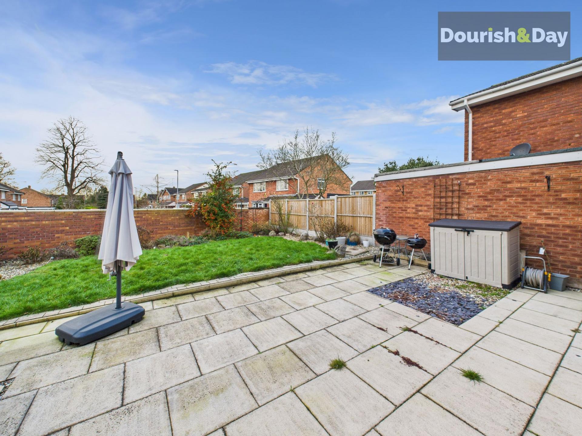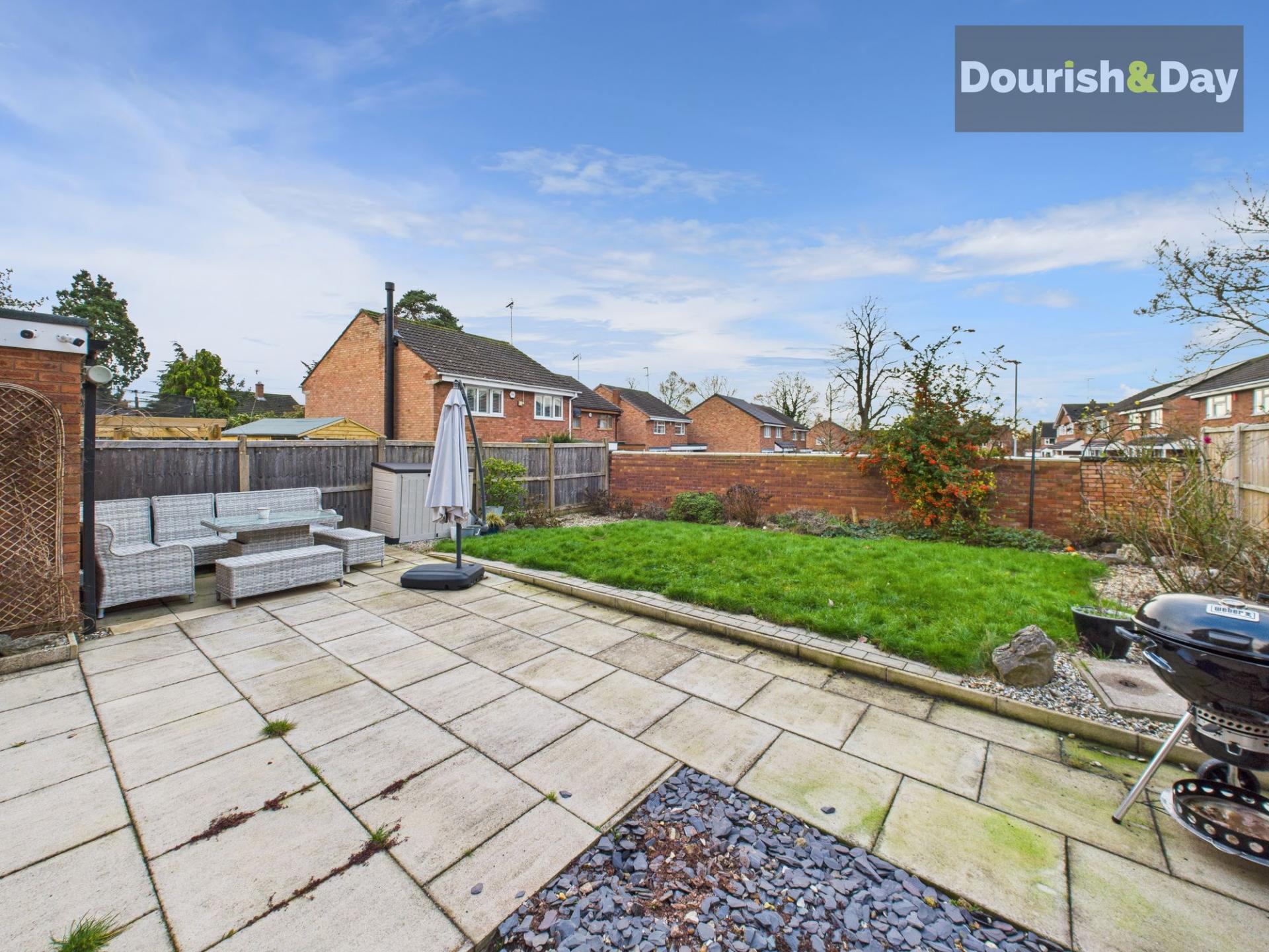- Large, private rear garden with patio, lawn and access to the garage