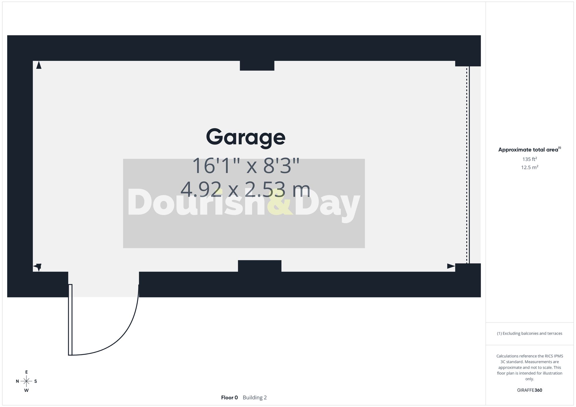 A detached single garage is positioned to the left of the property, providing further storage or parking options.