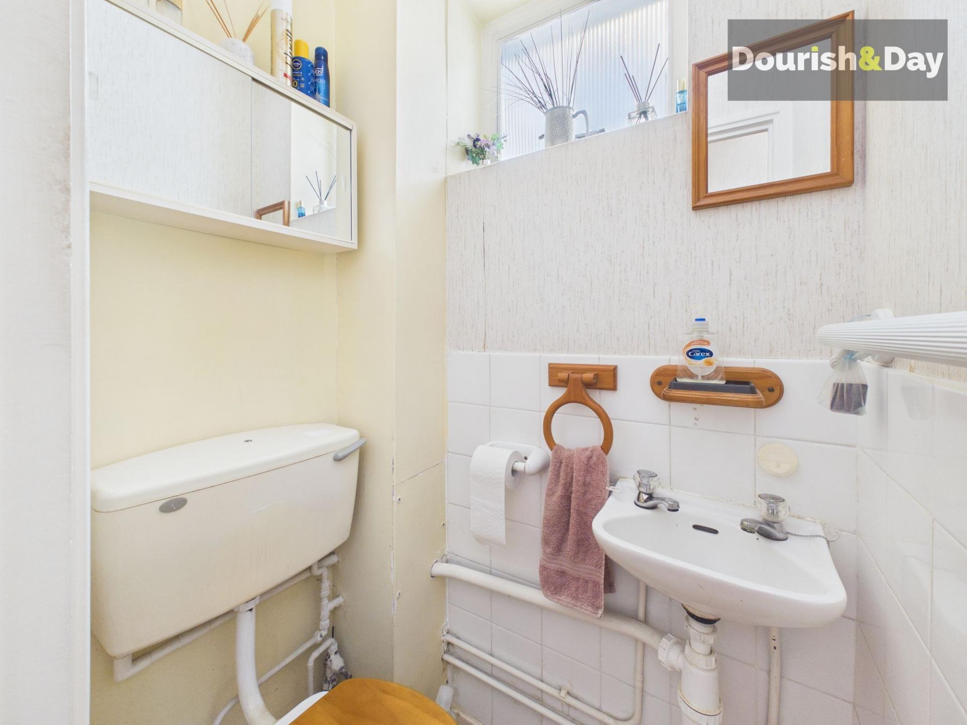 To the rear of the ground floor, the inner hallway provides access to a guest WC, along with an impressively large under-stairs storage cupboard which functions almost as a storage room. A door leads through to the conservatory/lean-to, which in turn opens out to the garden.