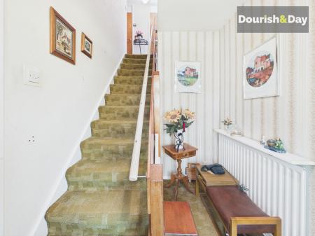 Step inside through the entrance porch and into the hallway, where stairs rise to the first floor. From here, the kitchen/dining space sits to the left, while the lounge is positioned to the right. The layout then connects at the rear via an inner hallway, creating a practical flow throughout the ground floor.
