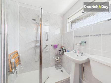 The landing also provides access to a modern shower room featuring a large walk-in shower, along with two substantial storage cupboards, one housing the boiler and another offering excellent walk-in storage space.