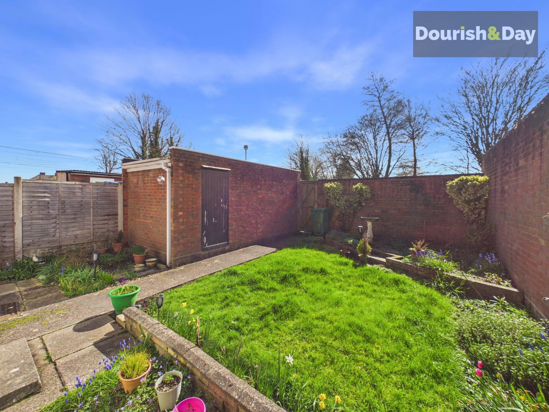 Outside, the rear garden is mainly paved with a pathway leading to the rear gate. A lawned section sits to the right-hand side, along with a slightly raised area to the rear which could be used as a flower bed or additional seating space.