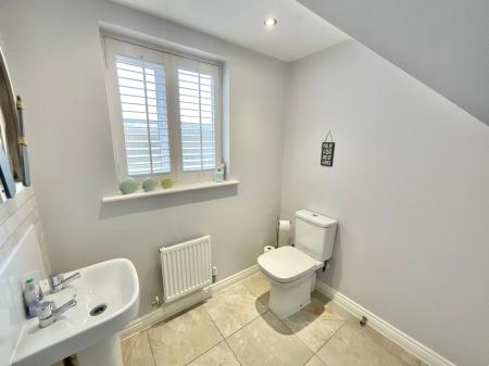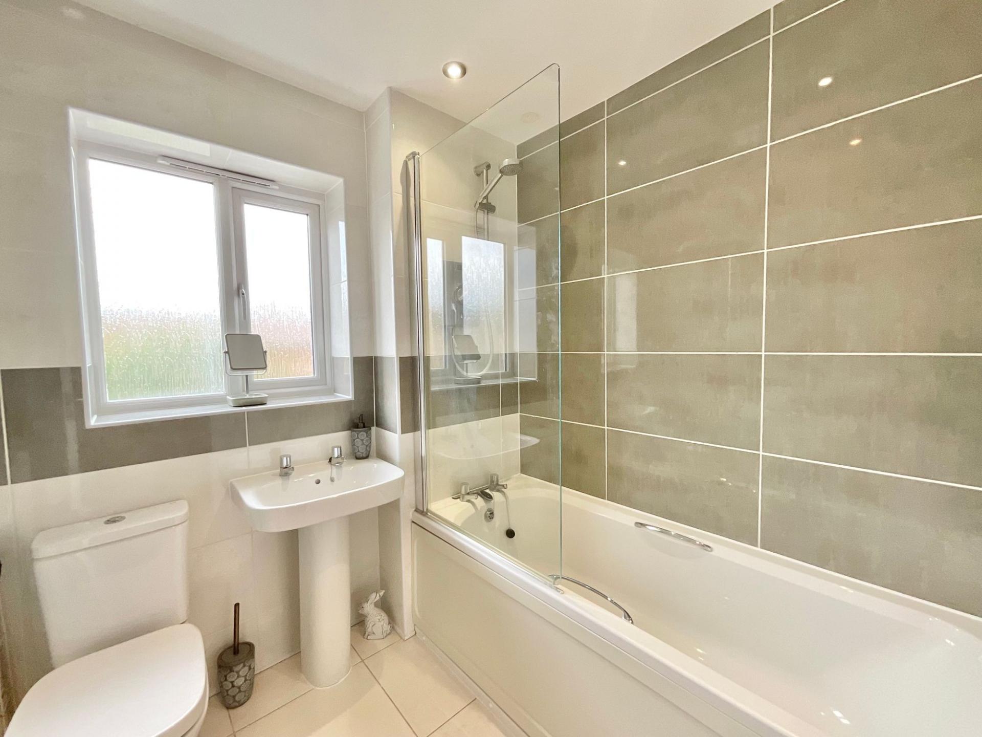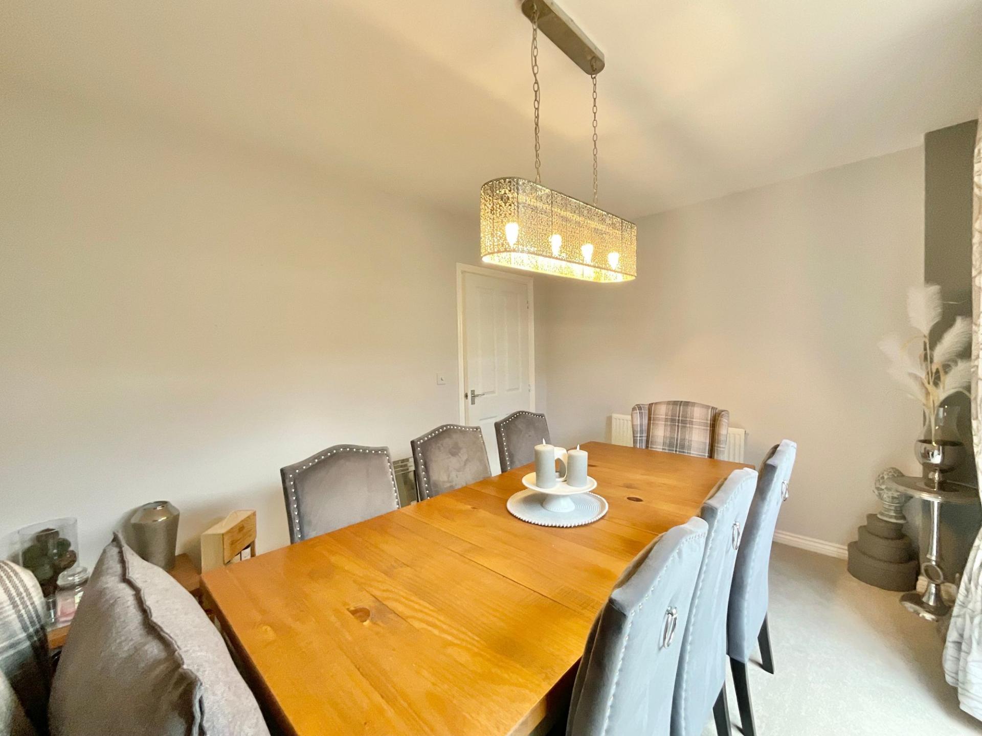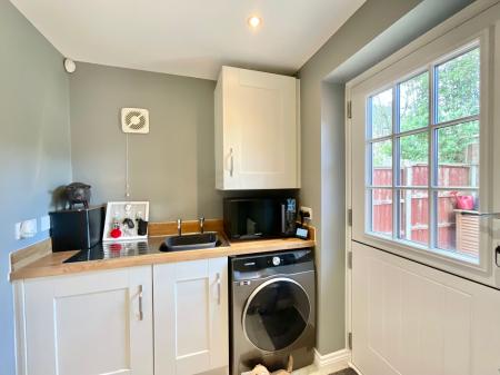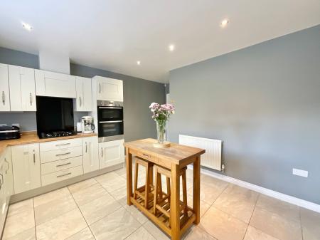- Stylish L-shaped kitchen with shaker cabinetry, integrated appliances, and breakfast space, plus utility room with garden access and convenient downstairs W/C.