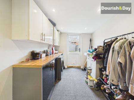 The kitchen also provides access to the converted garage, now used as a utility room. This space offers additional worktops, cupboard storage and under-counter space for appliances such as a washing machine.