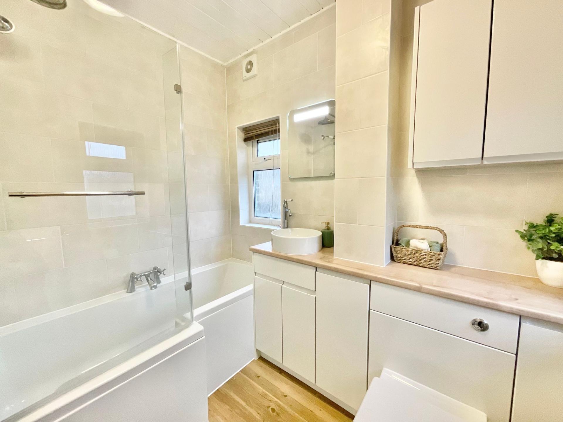 - Two double bedrooms and a versatile third room for office/nursery, plus a stylish family bathroom with L-shaped bath, shower, vanity wash hand basin & W/C.